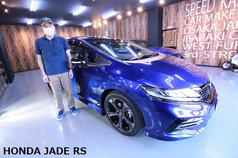 大阪府吹田市よりホンダ ジェイドのご入庫です!ボディカラーはコバルトブルーパール!施工はボディには