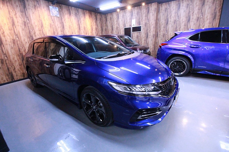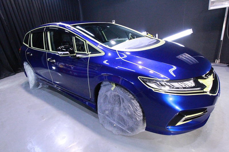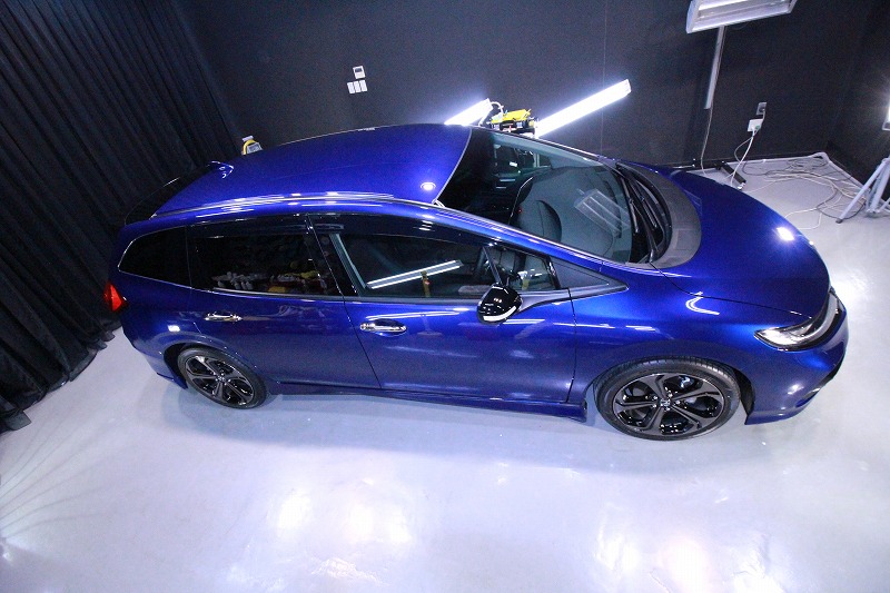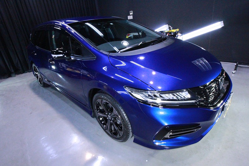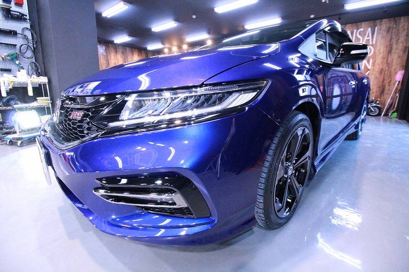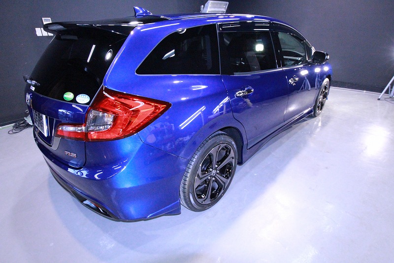 大阪府吹田市よりホンダ ジェイドのご入庫です!ボディカラーはコバルトブルーパール!施工はボディには