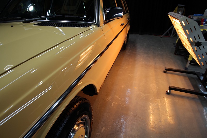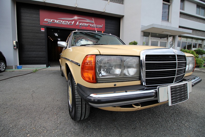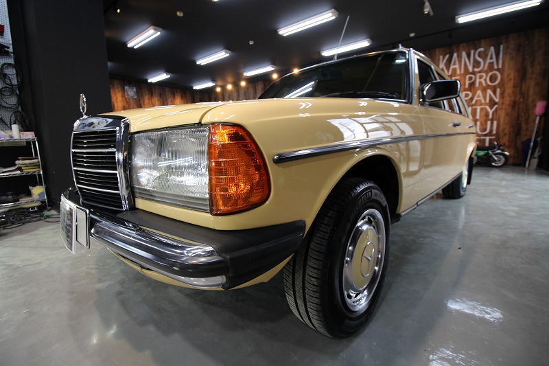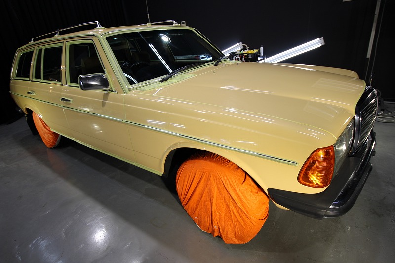 大阪府吹田市よりメルセデスベンツw123のご入庫です!ボディカラーはマニラベージュ!施工はボディ