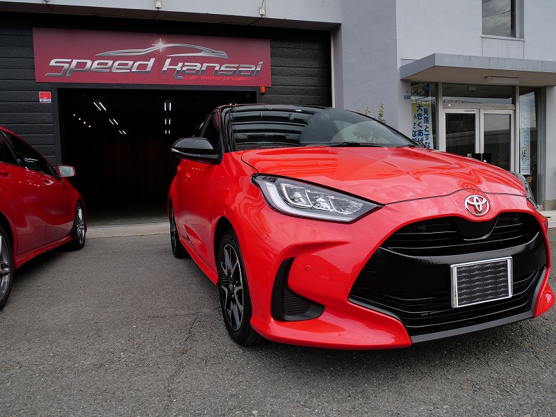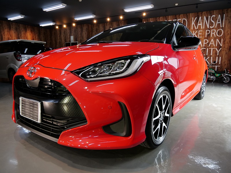 奈良県より当店のリピーター様がトヨタ ヤリスをお持ち下さいました!ボディカラーはコーラルクリスタル