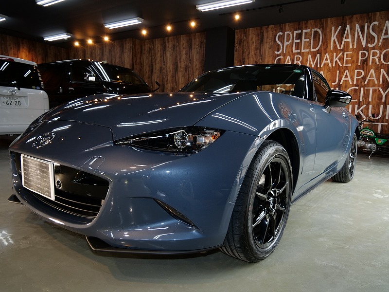大阪府高槻市よりマツダロードスターのご入庫です!ボディカラーは新色のポリメタルグレーメタリック!