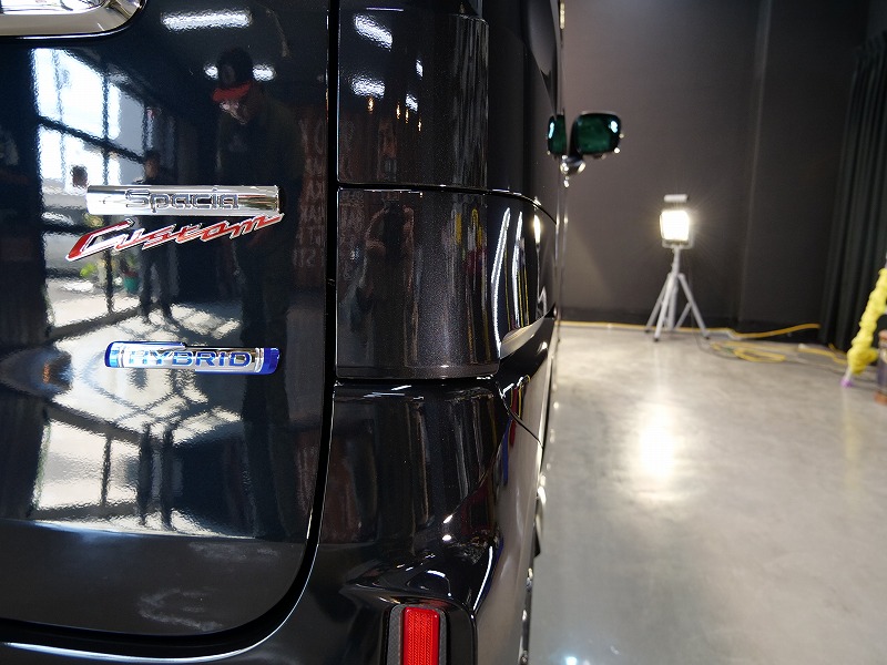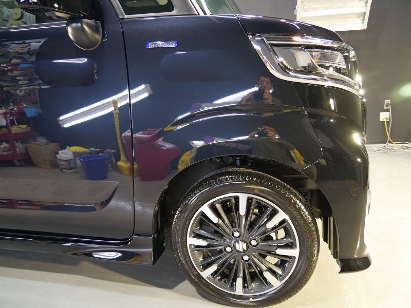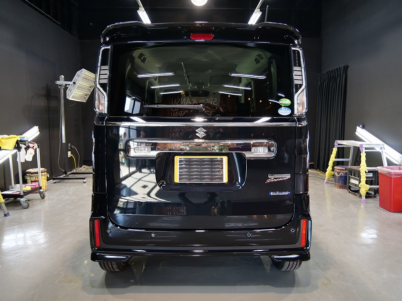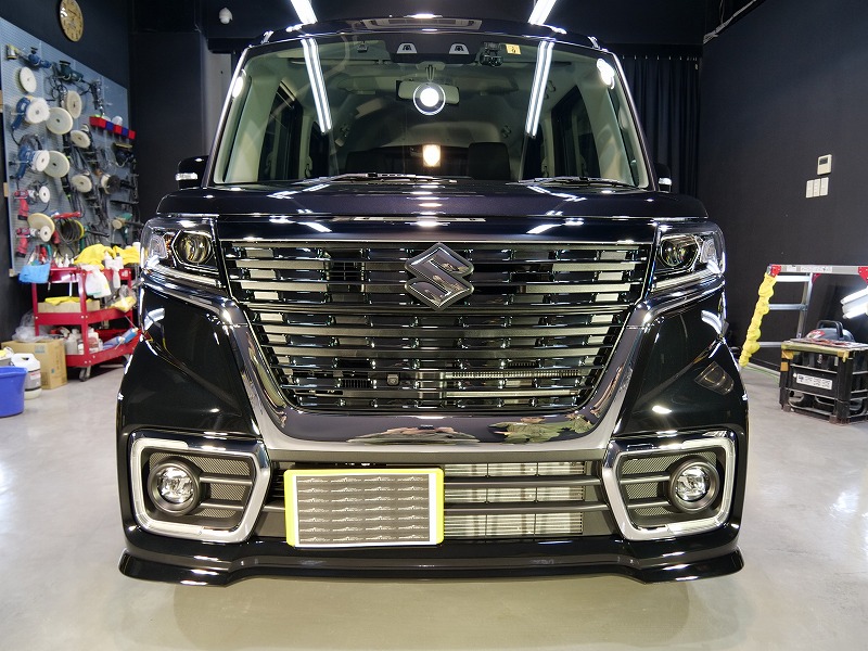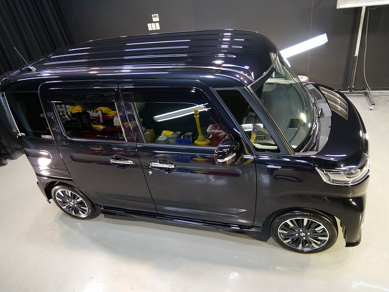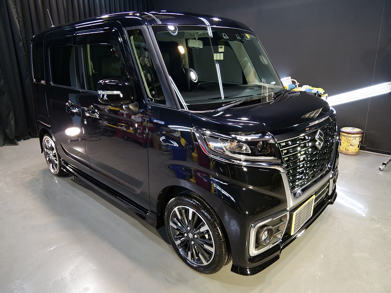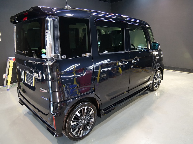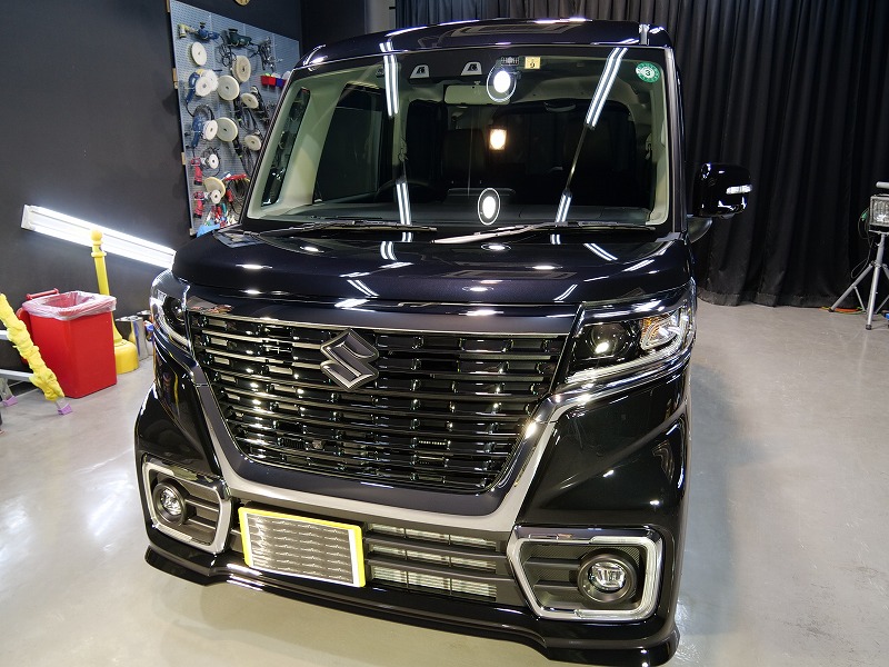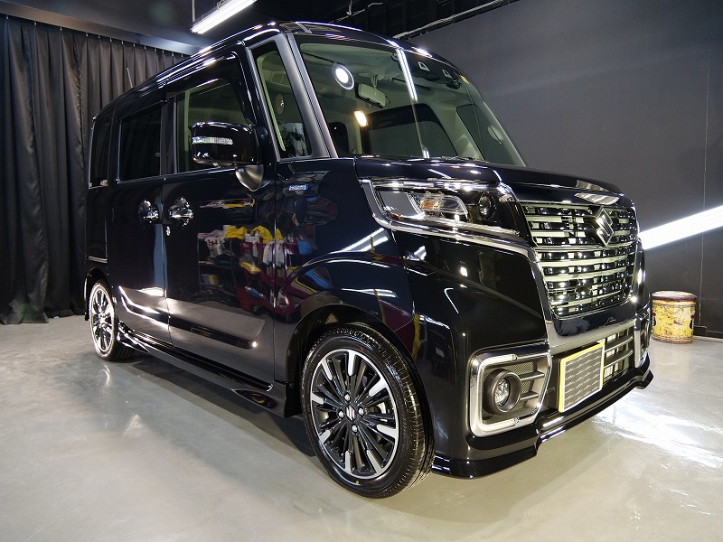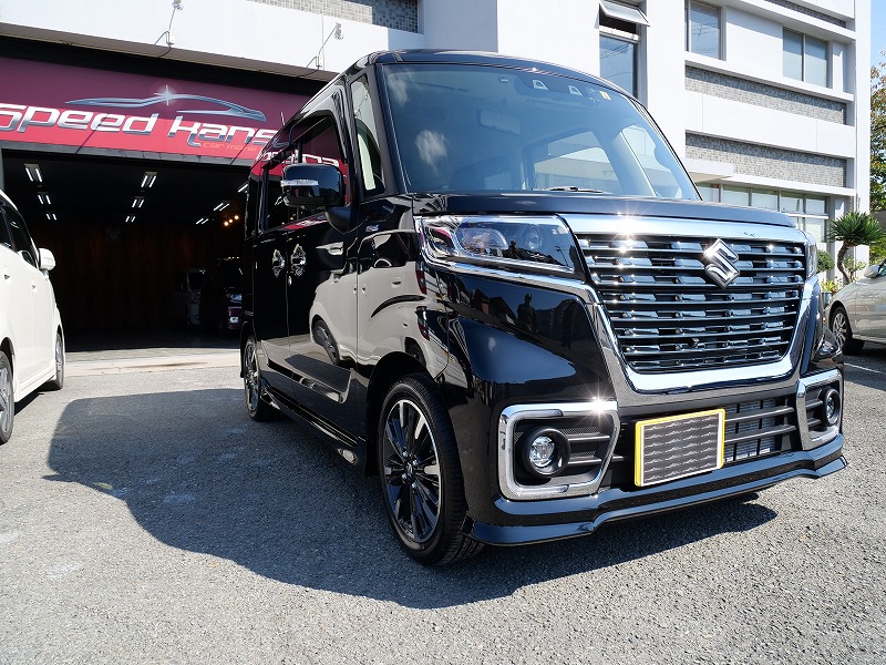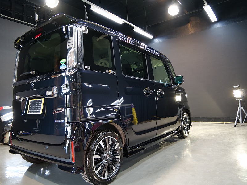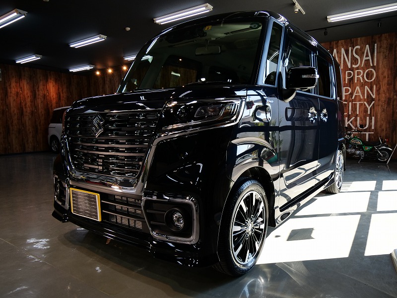 大阪府茨木市よりスズキ スペーシアカスタムのご入庫です!ボディカラーはブルーイッシュブラックパール3