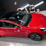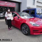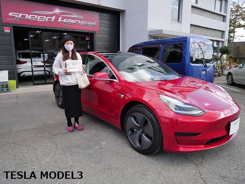 大阪府吹田市よりテスラ モデル3 のご入庫です!ボディカラーはレッドマルチコート!施工はボディには