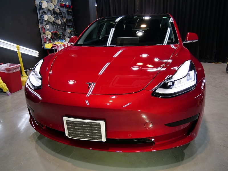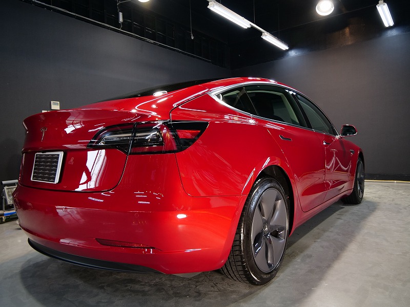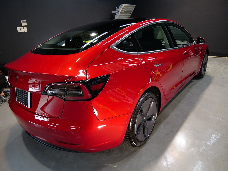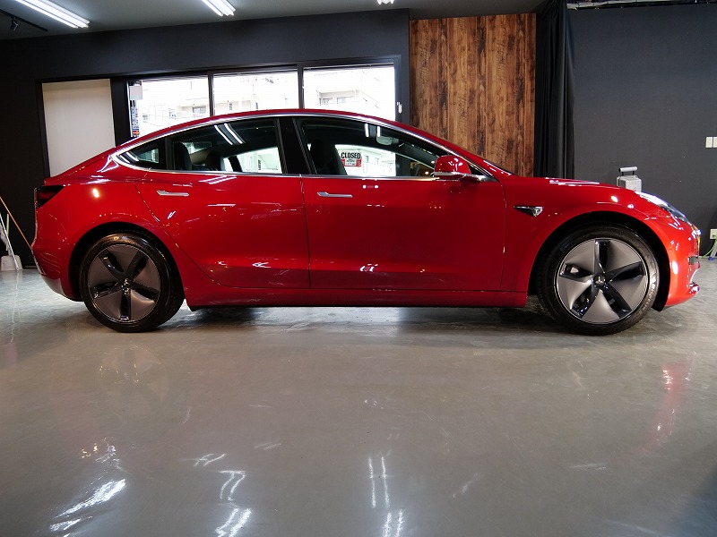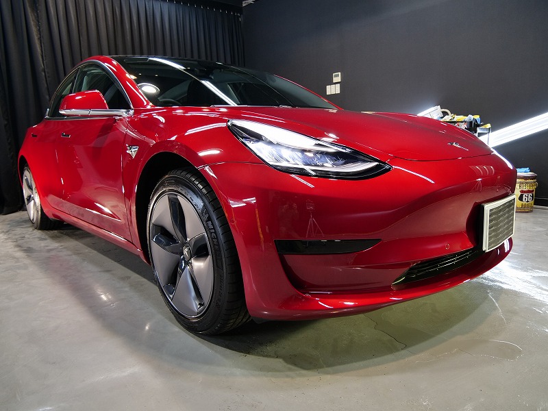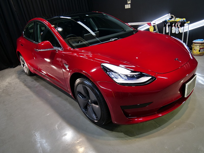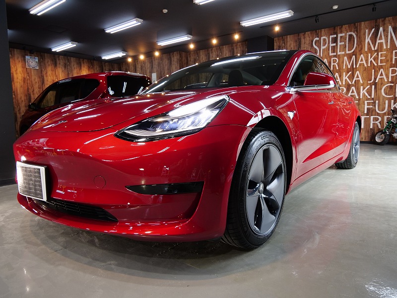 大阪府吹田市よりテスラ モデル3 のご入庫です!ボディカラーはレッドマルチコート!施工はボディには