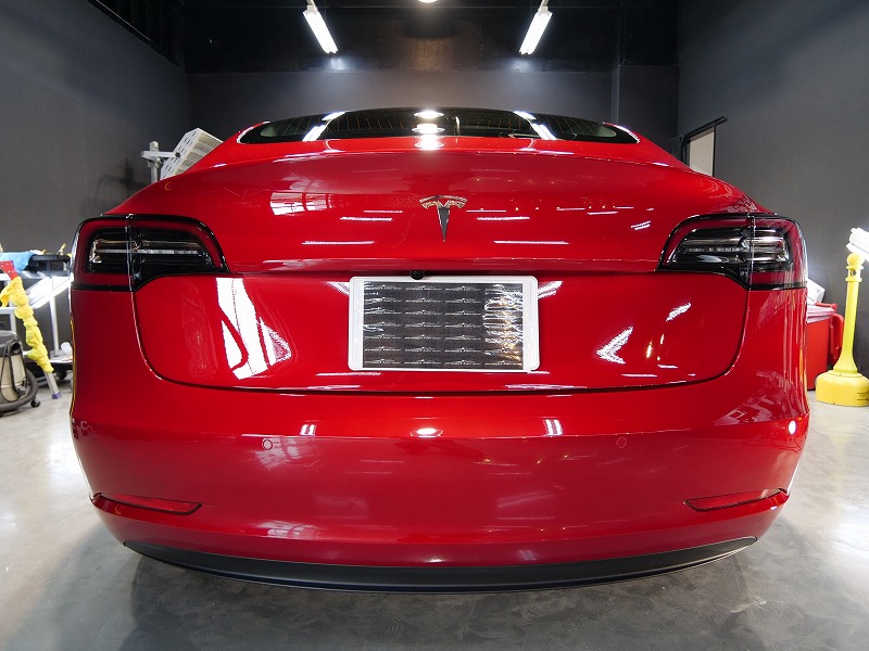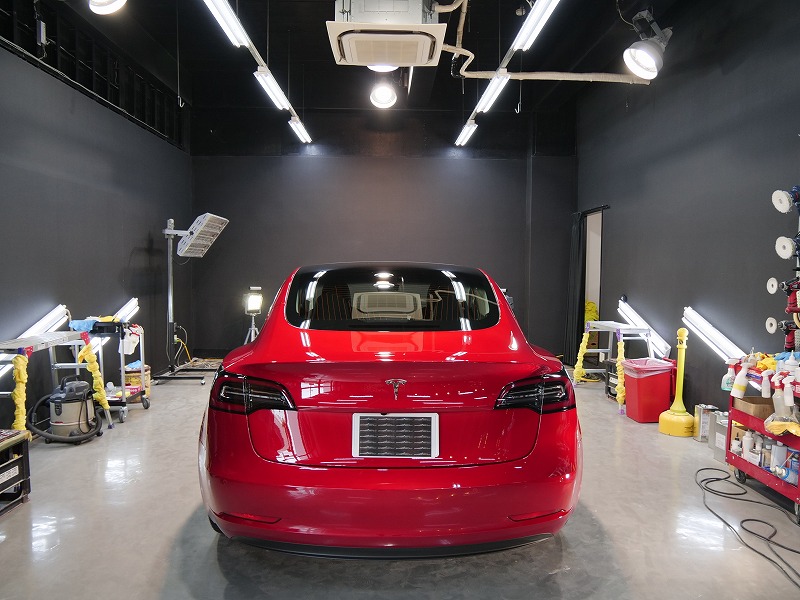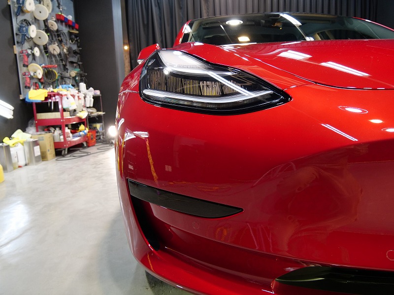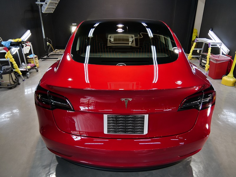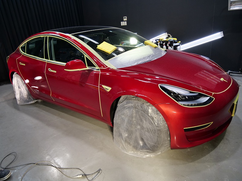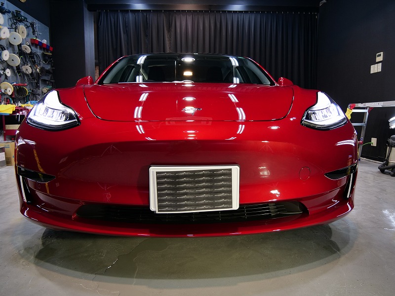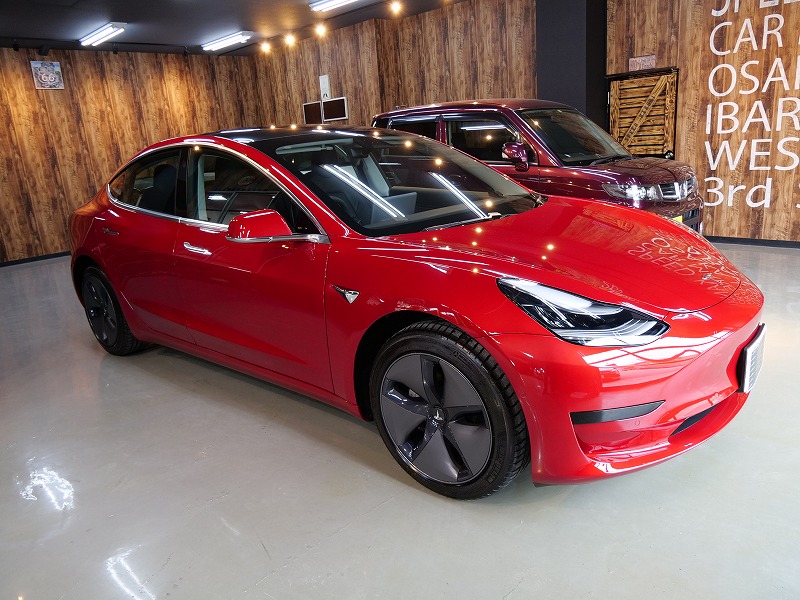 大阪府吹田市よりテスラ モデル3 のご入庫です!ボディカラーはレッドマルチコート!施工はボディには