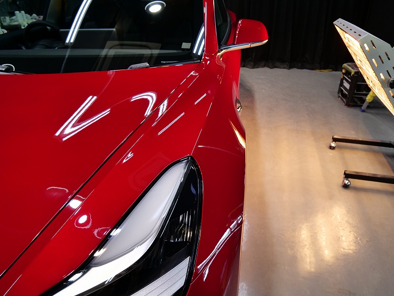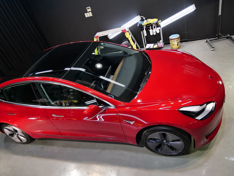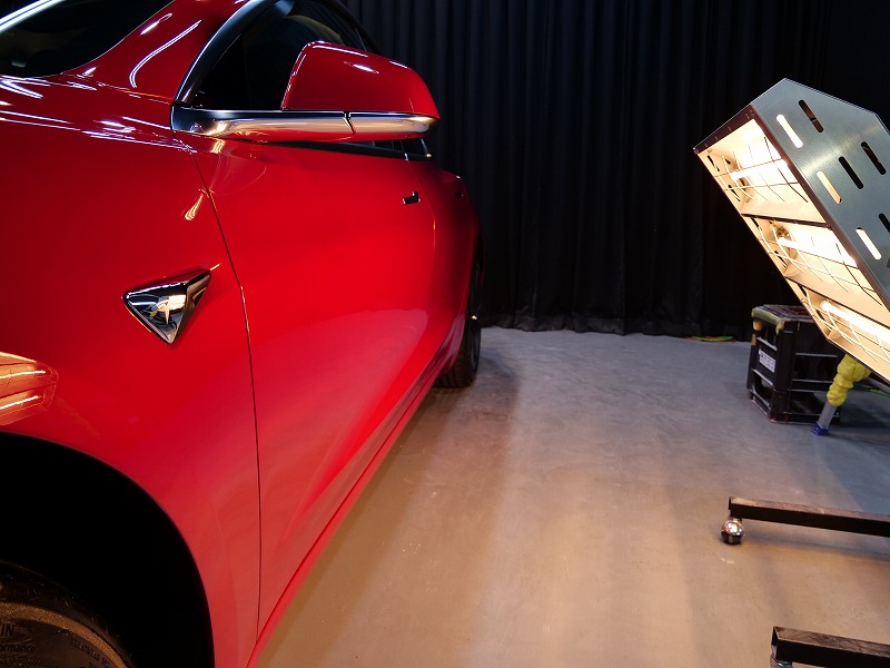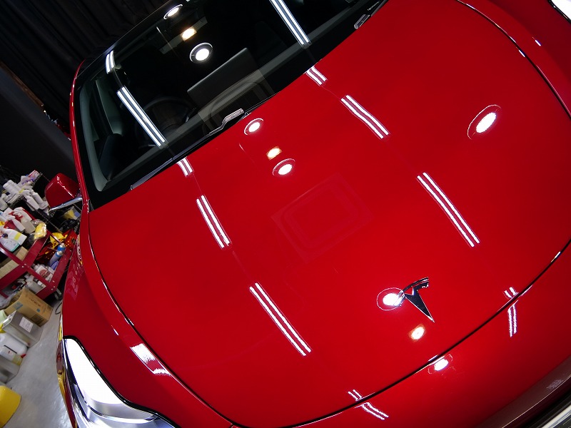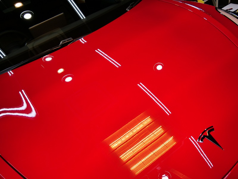 テスラと言えばアメ車で性能は抜群ですがボディの状態はいつも傷などが沢山・・やはりきっちり磨いて