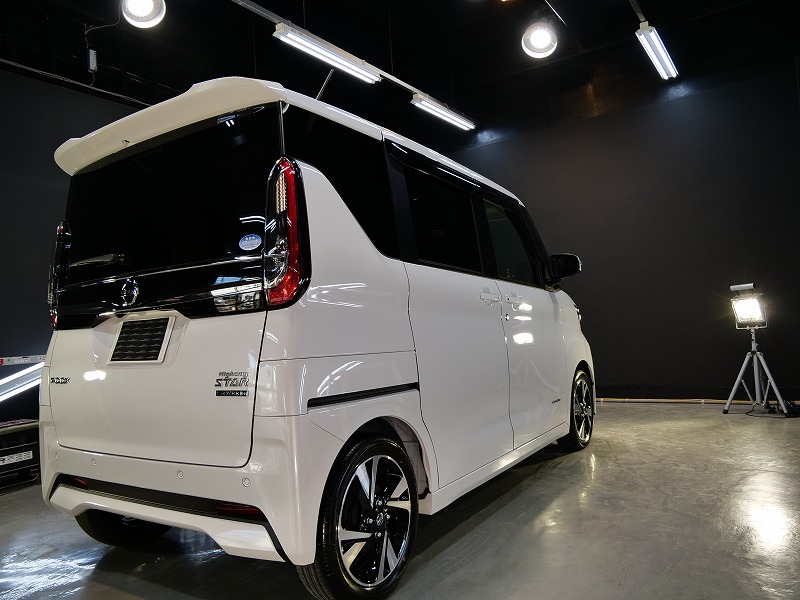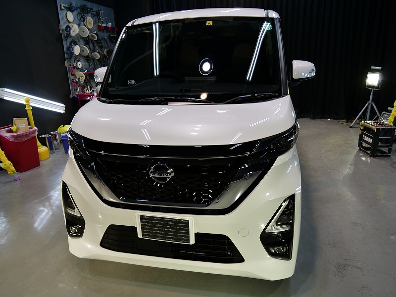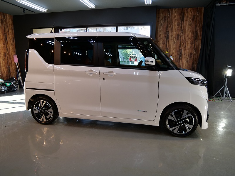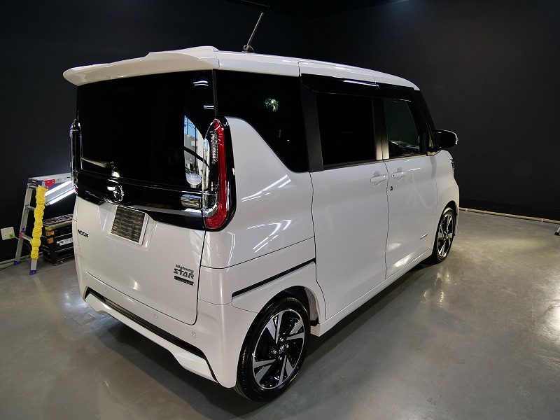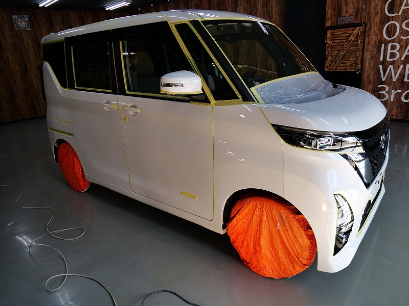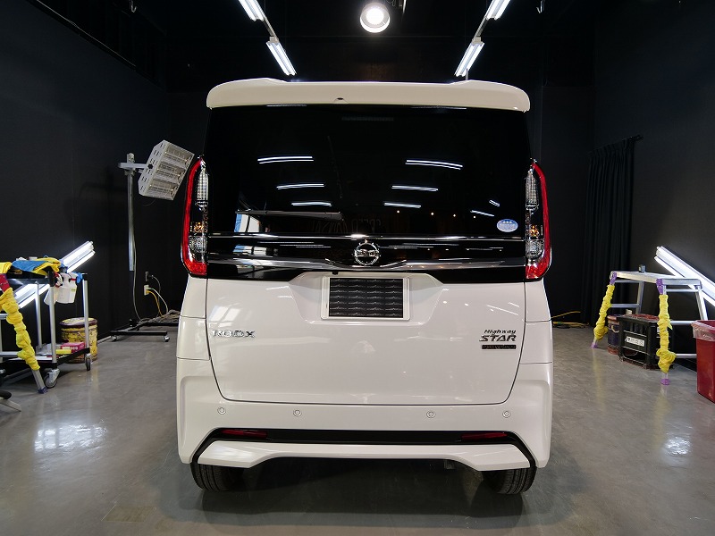 大阪府高槻市より日産ルークスハイウェイスターのご入庫です!ボディカラーはホワイトパール!施工はボディ