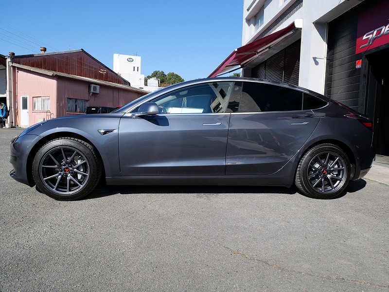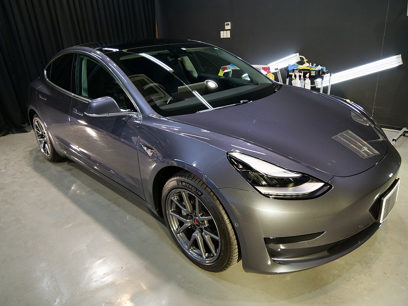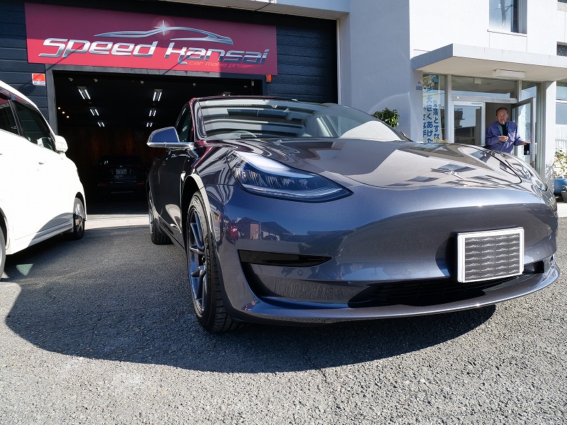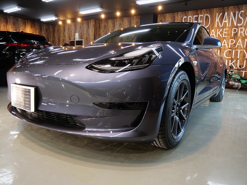 大阪府豊中市より人気のテスラ モデル3 のご入庫です!ボディカラーはミッドナイトシルバーメタリック!