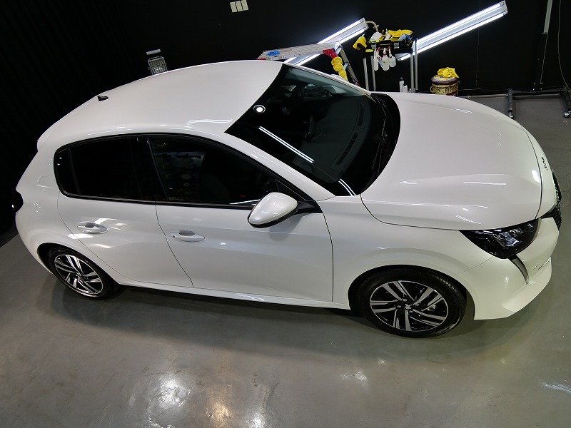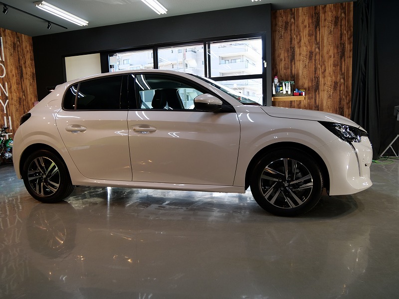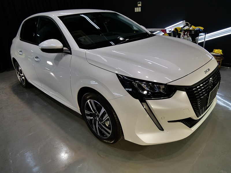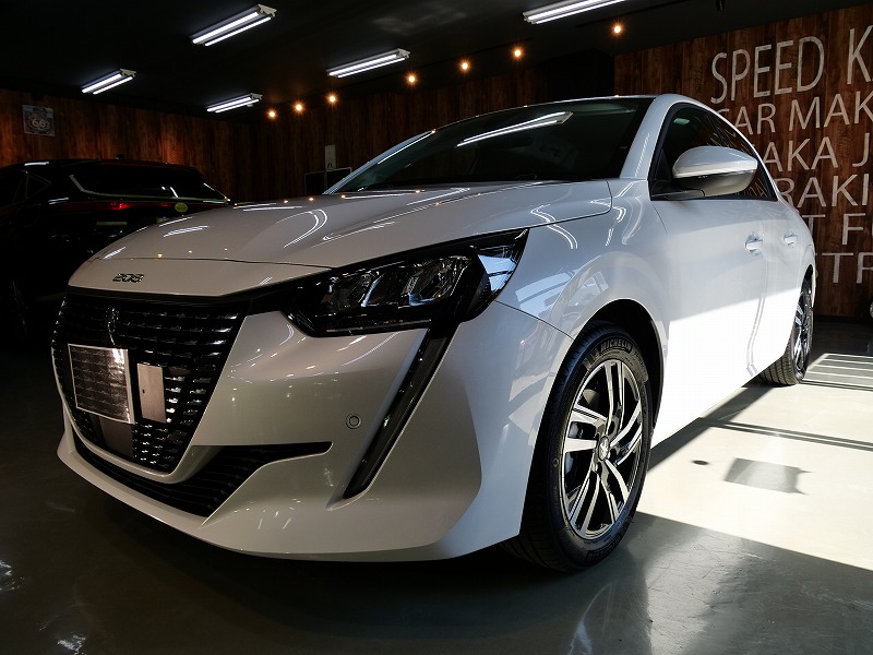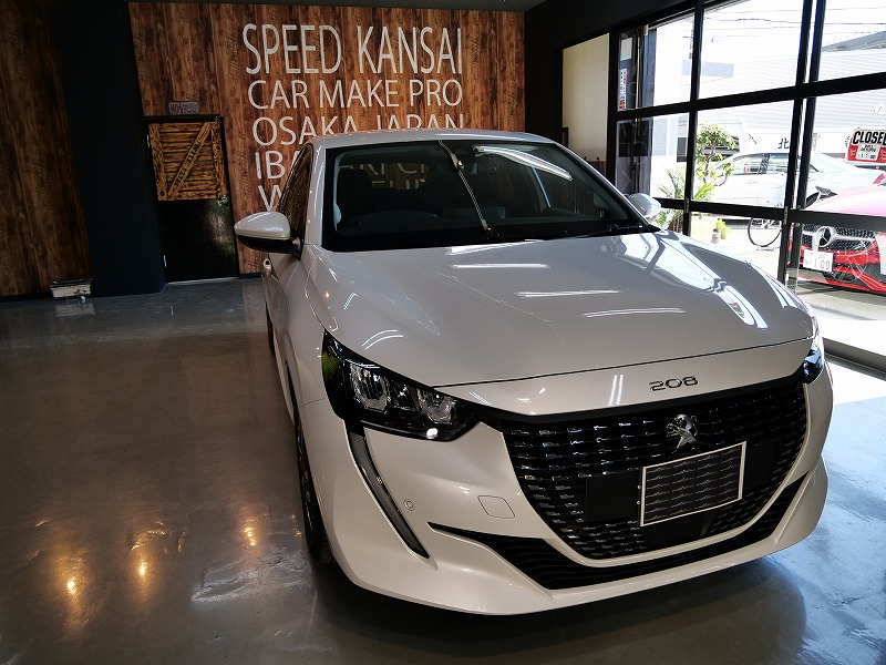 大阪府高槻市よりプジョー208のご入庫です!ボディカラーはパールホワイト!施工はボディにはG’ZOX