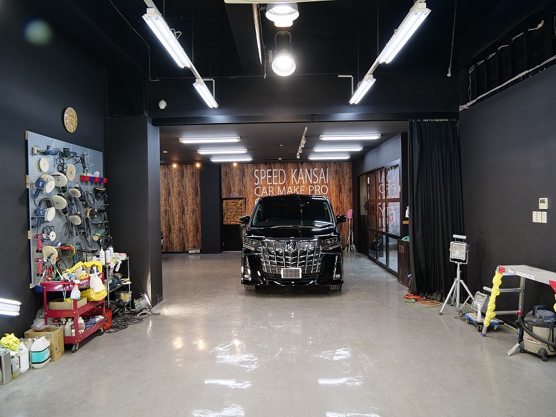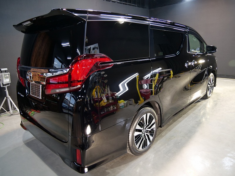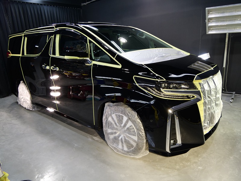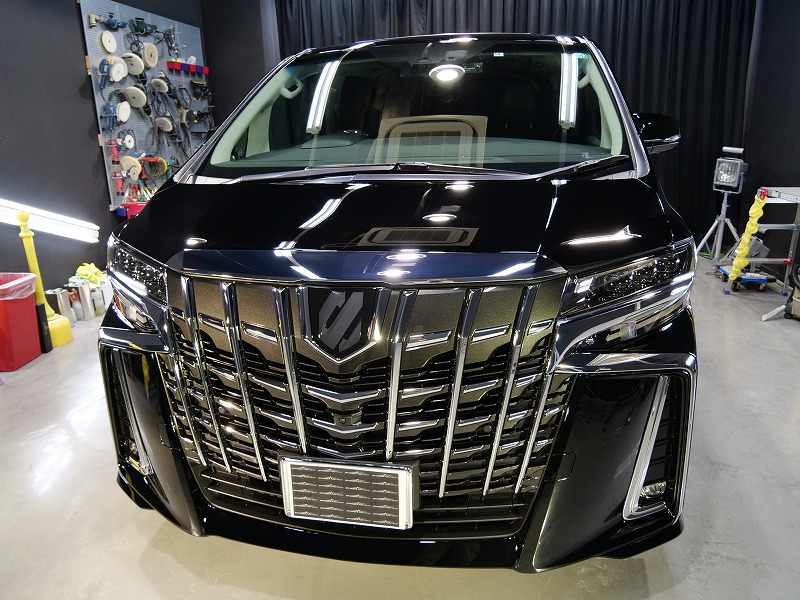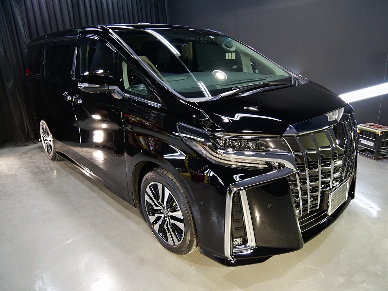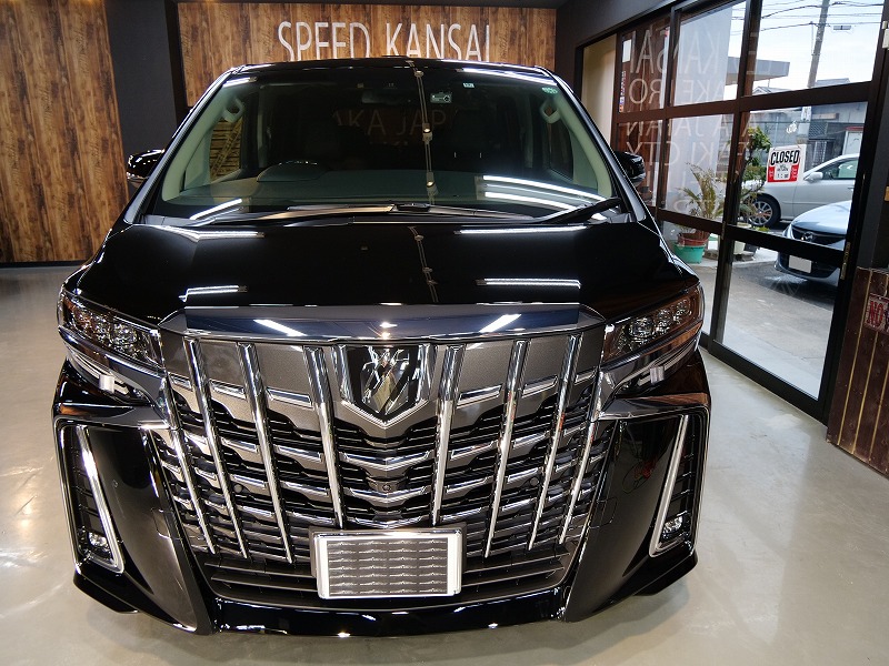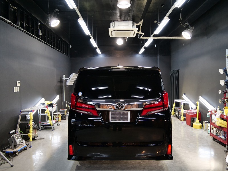 大阪府吹田市よりトヨタアルファードのご入庫です!ボディカラーはトヨタのブラック202!施工はボディ