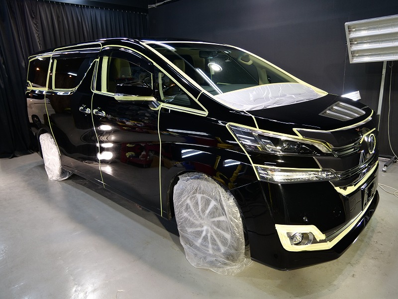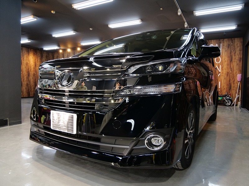 京都府木津川市よりトヨタヴェルファイアのご入庫です!ボディカラーはブラック202!施工はボディには