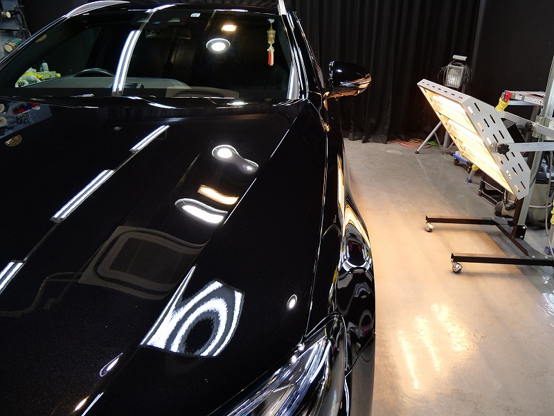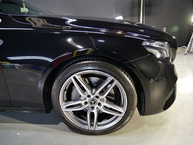 ブラックメタリック!施工はボディにはハイモースコートザ・ネオ(超撥水)/ホイールコーティング/アルミ