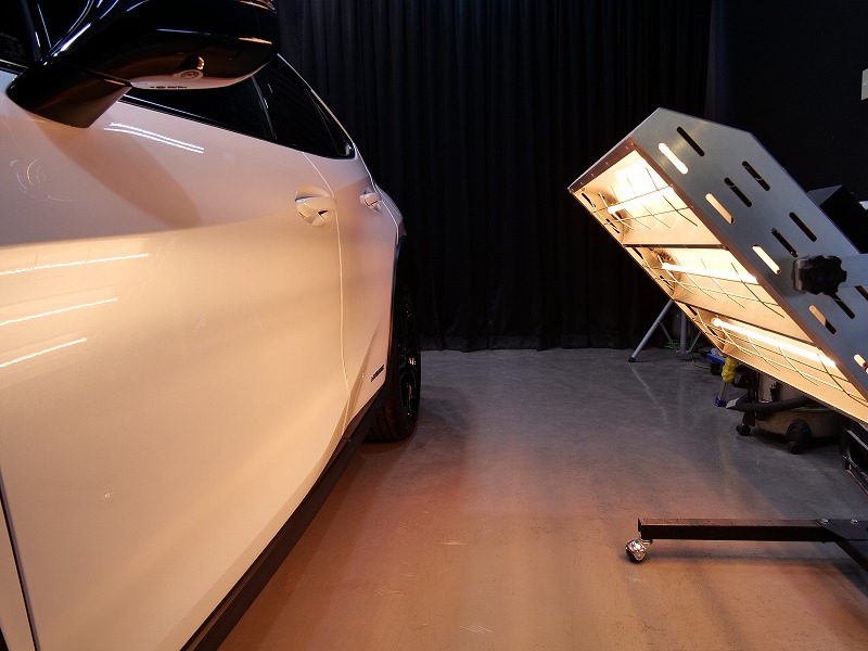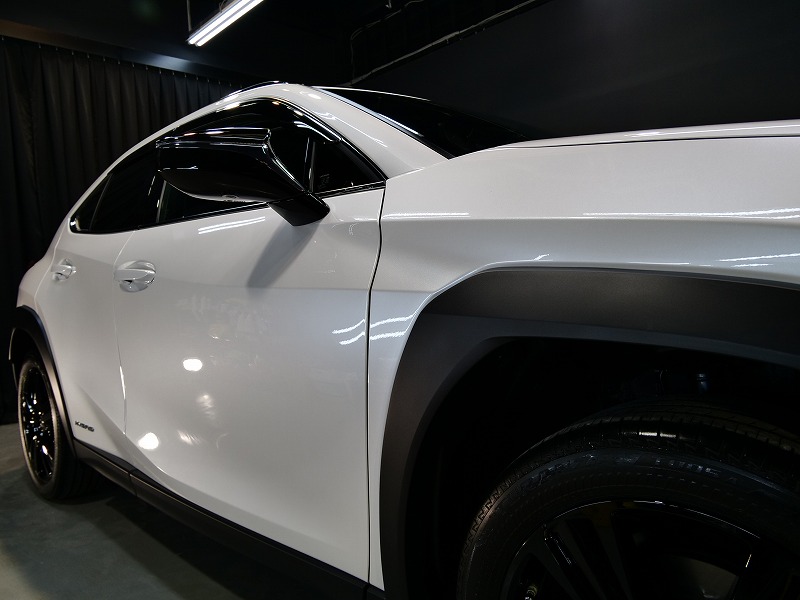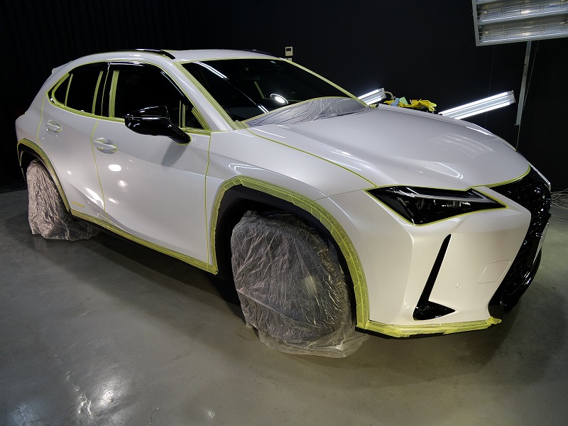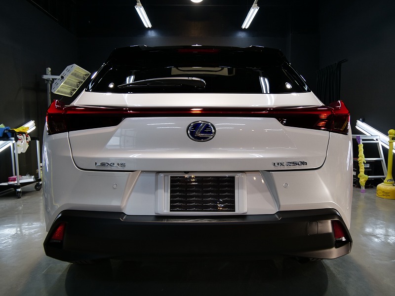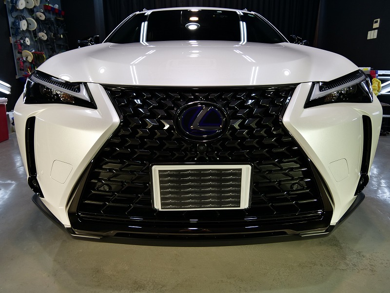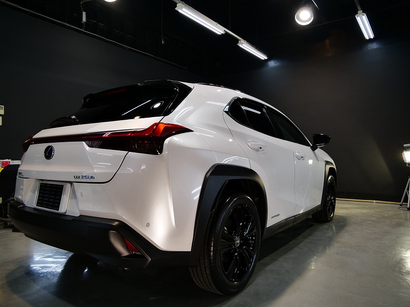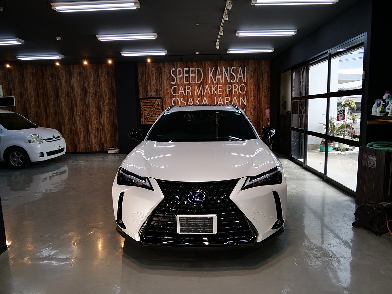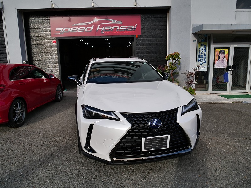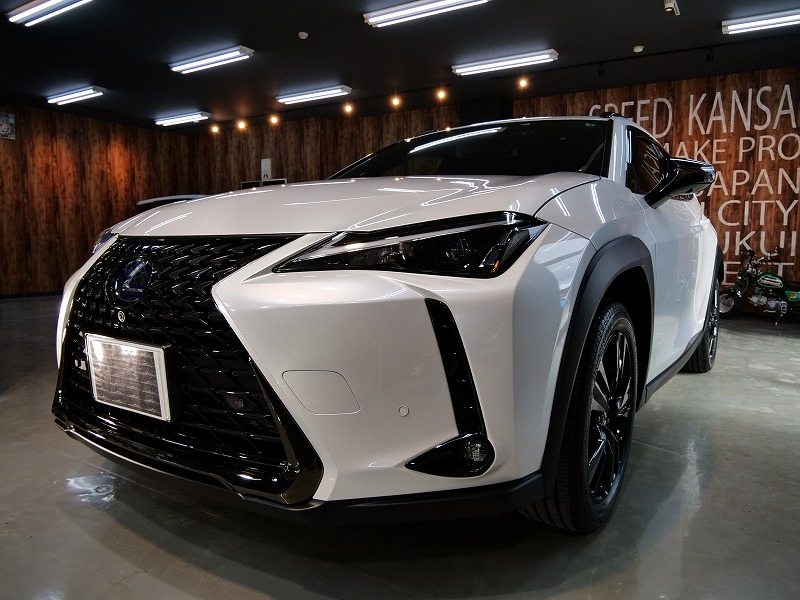 大阪市よりレクサスUX250hのご入庫です!ボディカラーはソニッククォーツ!施工はボディにはハイモース