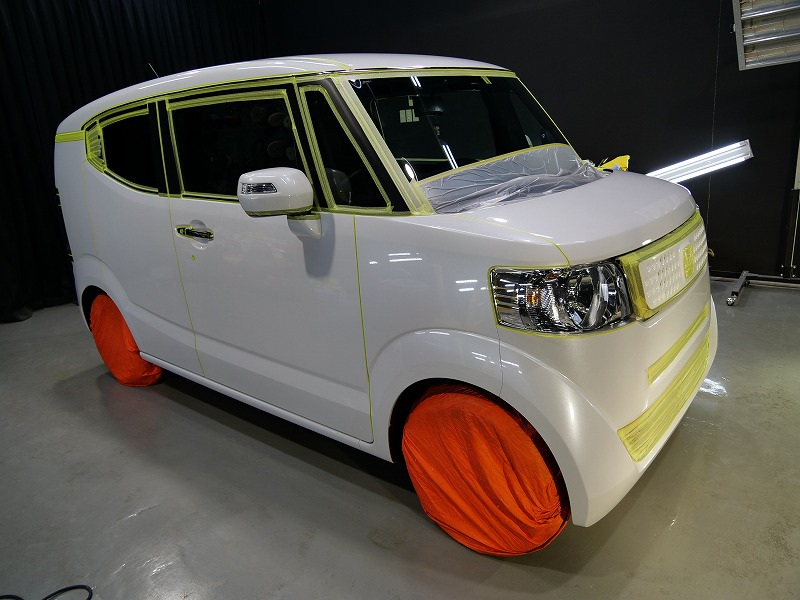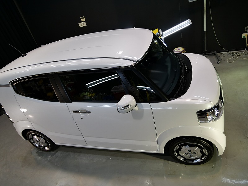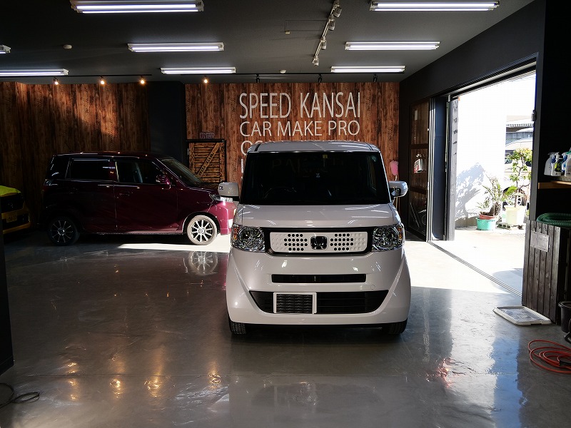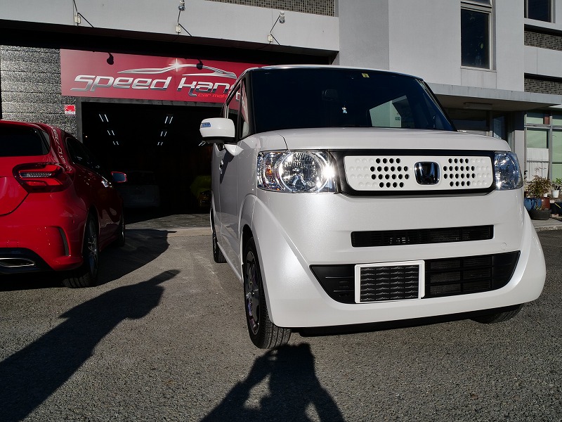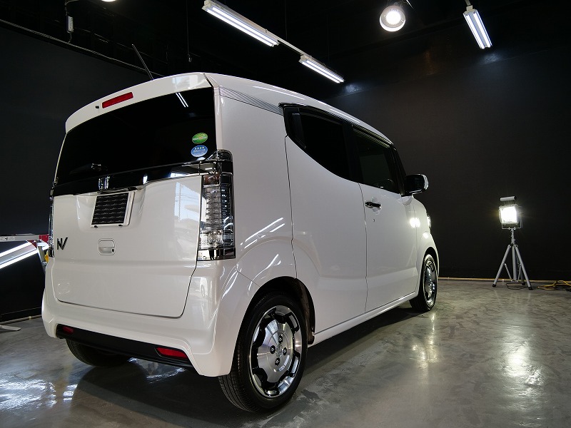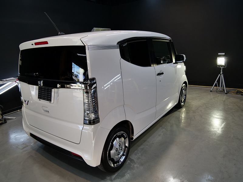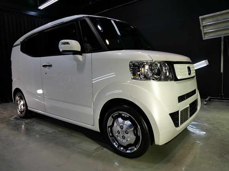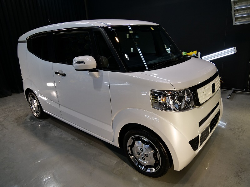 大阪府豊中市よりホンダN-BOX/のご入庫です!ボディカラーはプラチナホワイトパール!施工はボディには
