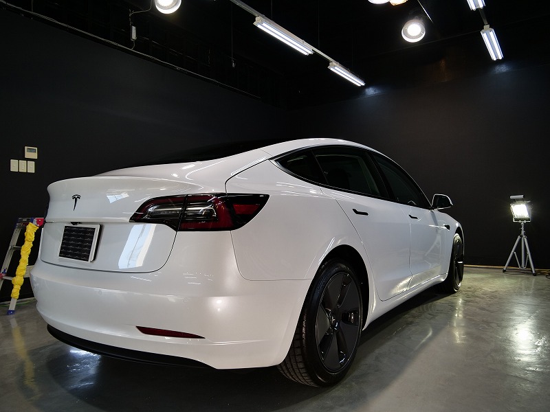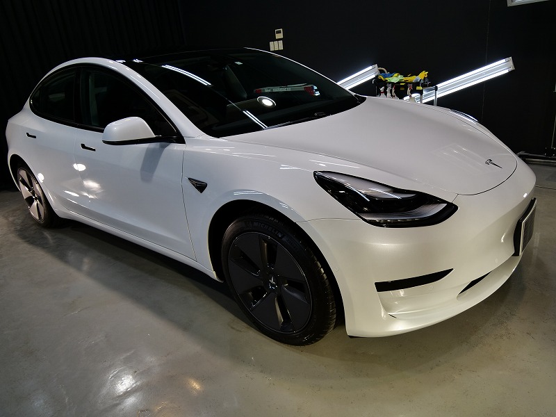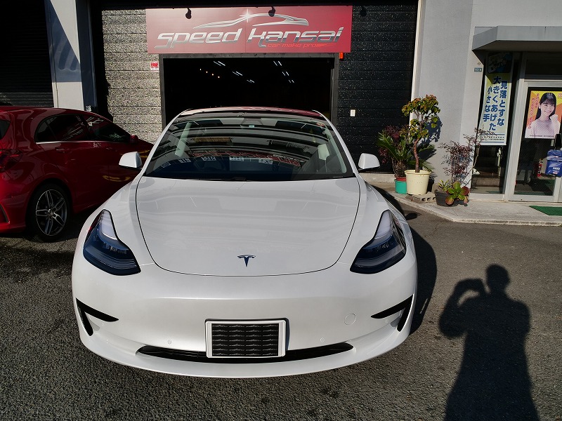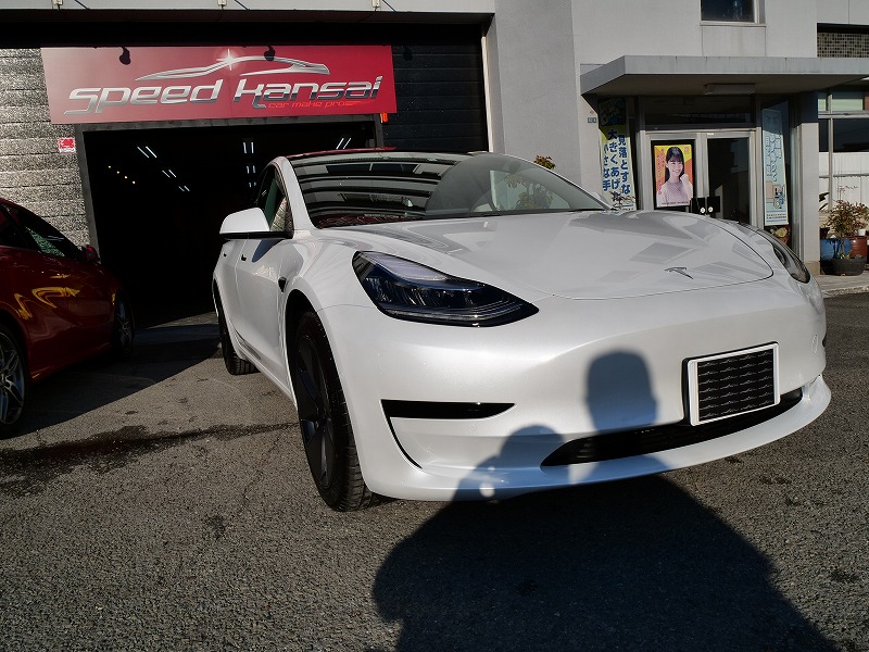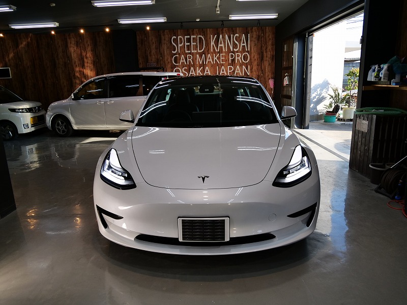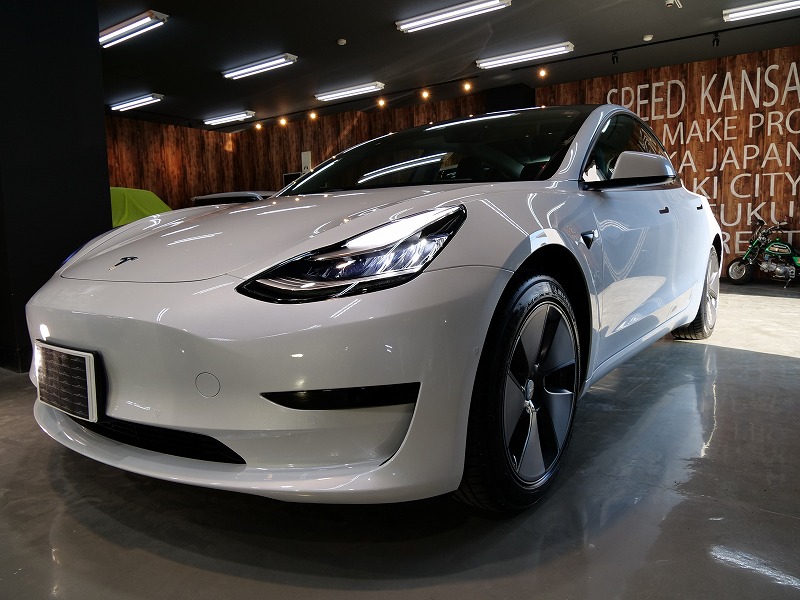 大阪市より人気のテスラ モデル3 のご入庫です!ボディカラーはパールホワイトマルチコート!施工はボディ