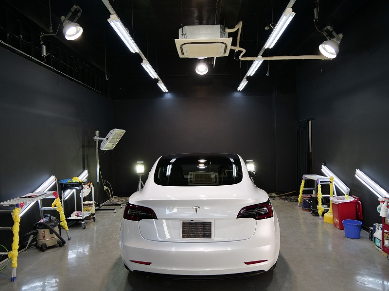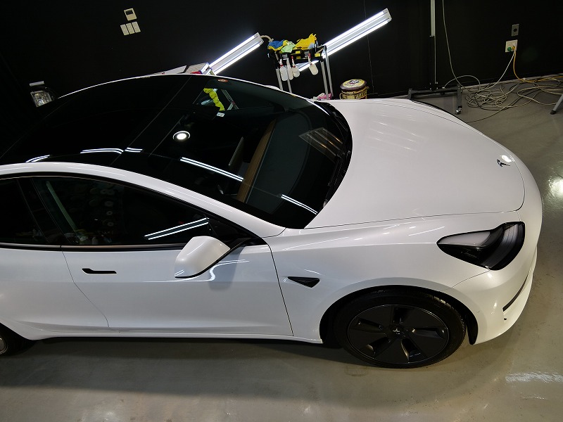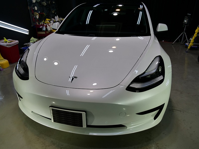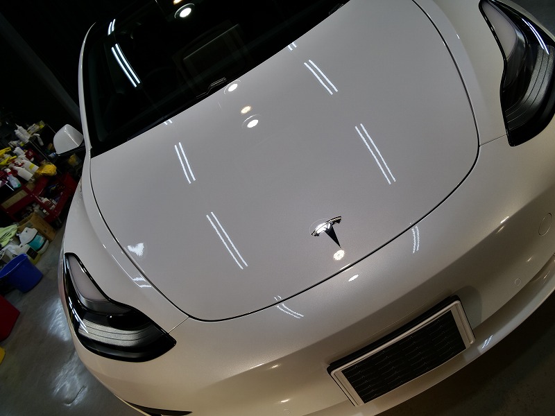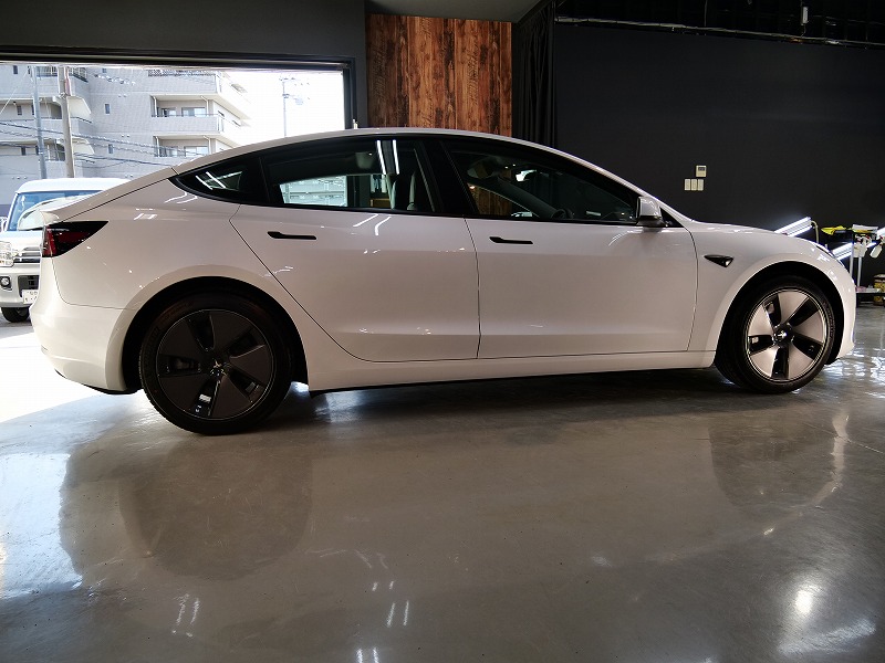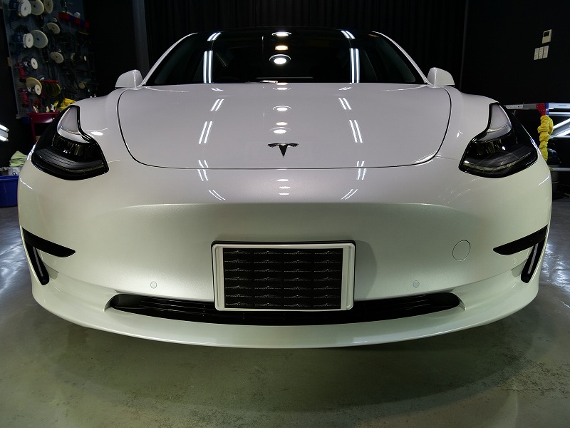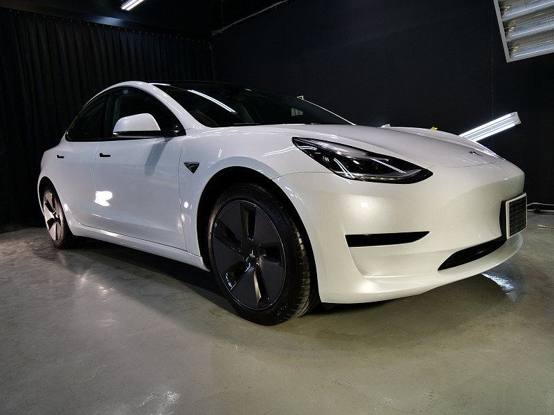 大阪市より人気のテスラ モデル3 のご入庫です!ボディカラーはパールホワイトマルチコート!施工はボディ