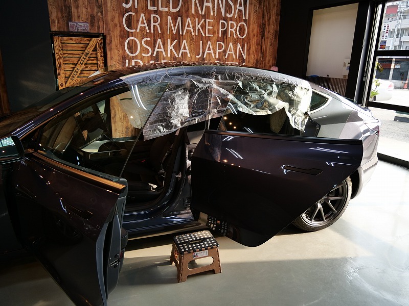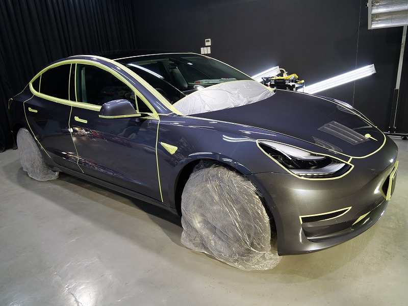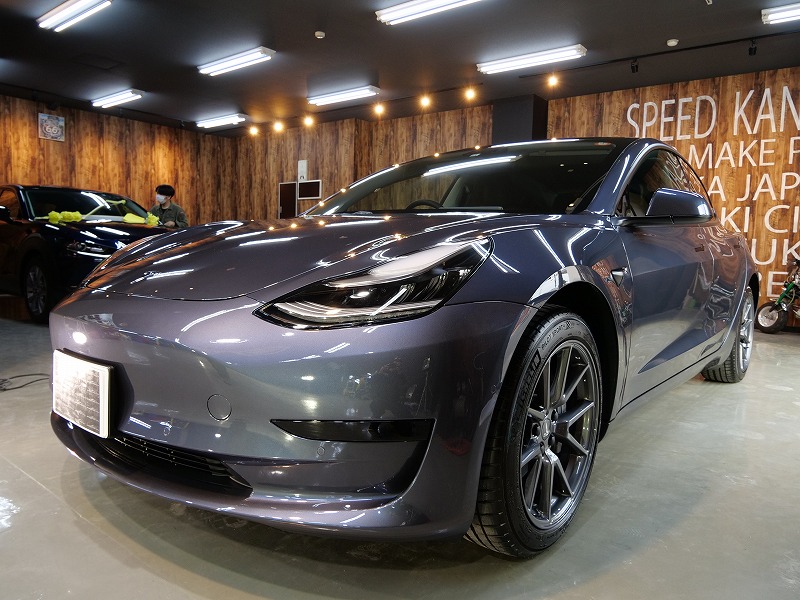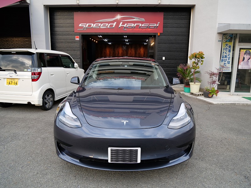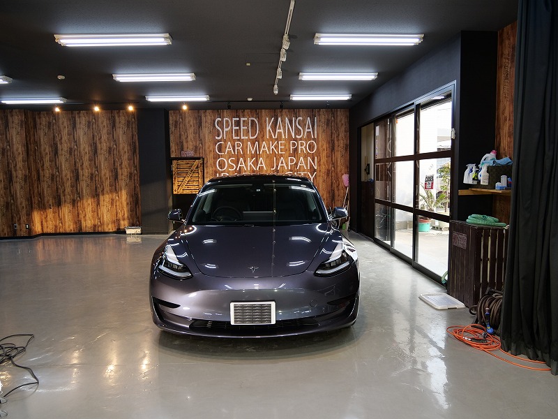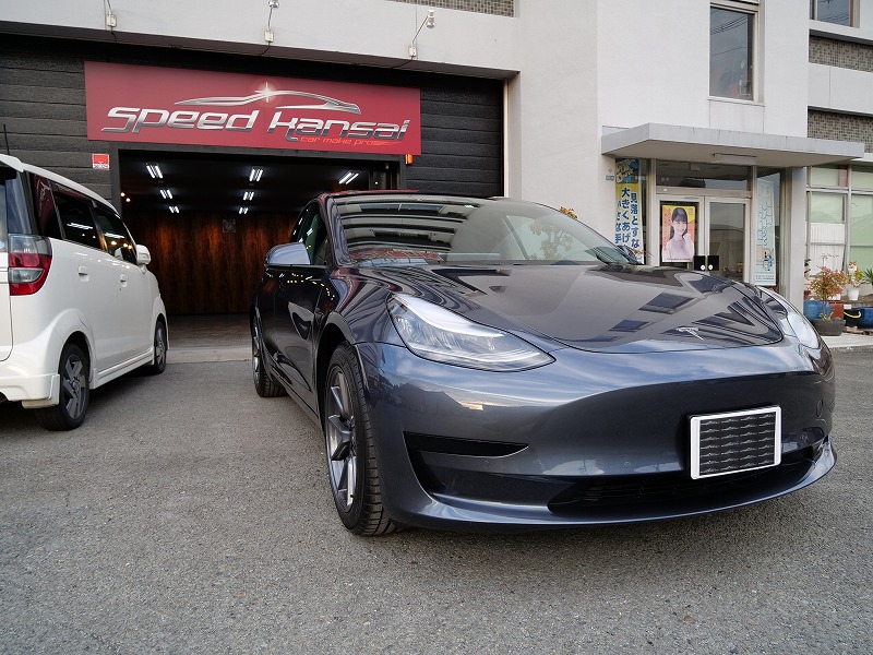大阪府茨木市よりテスラ モデル3 のご入庫です!ボディカラーはミッドナイトシルバーメタリック!施工は