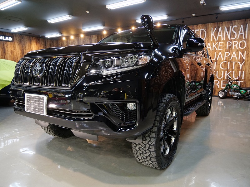 大阪府豊中市よりトヨタランドクルーザープラドTXのご入庫です!ボディカラーはトヨタのブラック202!