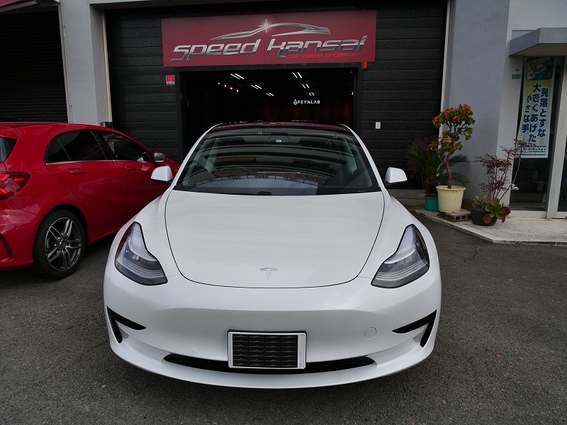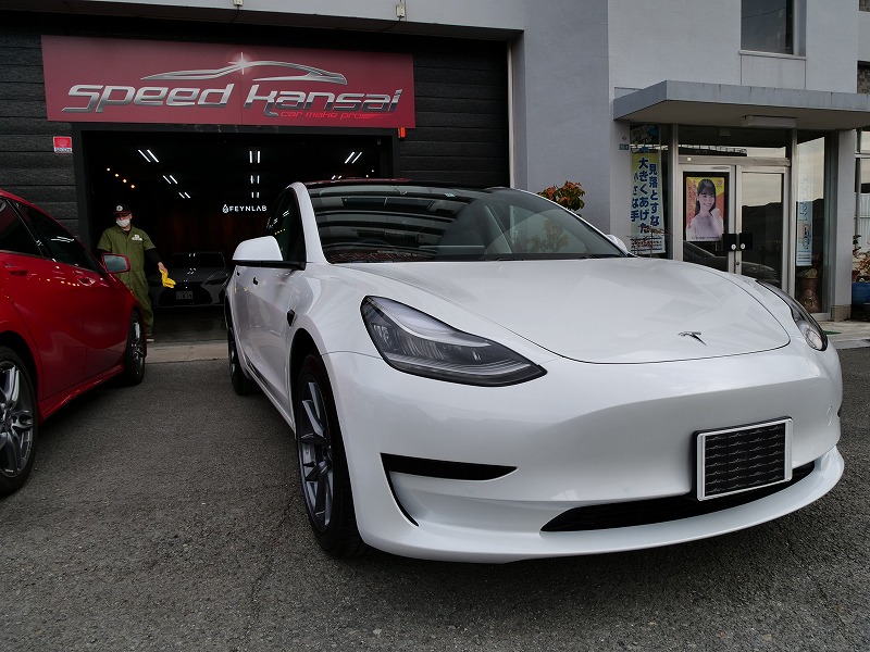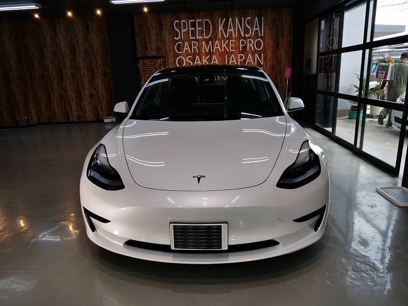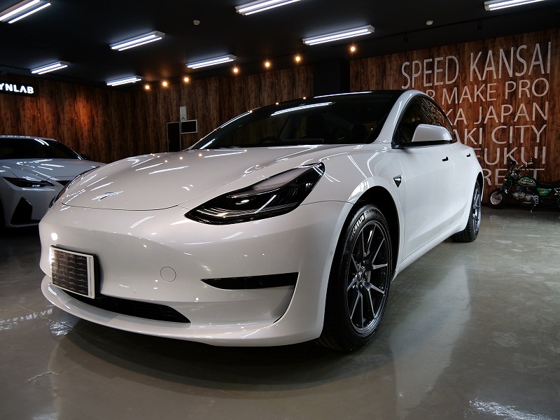 京都府より当店のリピーター様が人気のテスラ モデル3 をお持ち下さいました!ボディカラーはパール