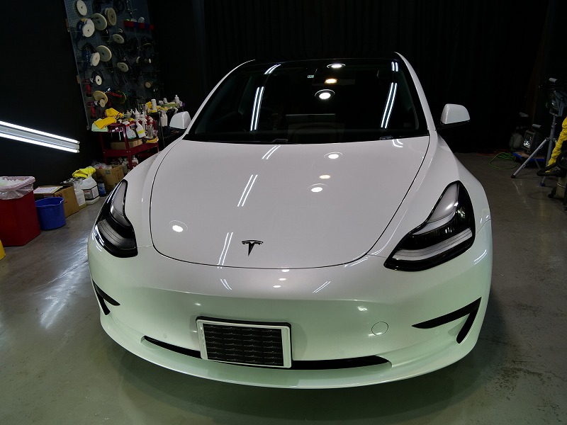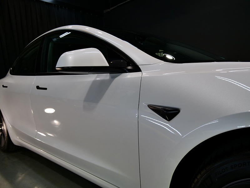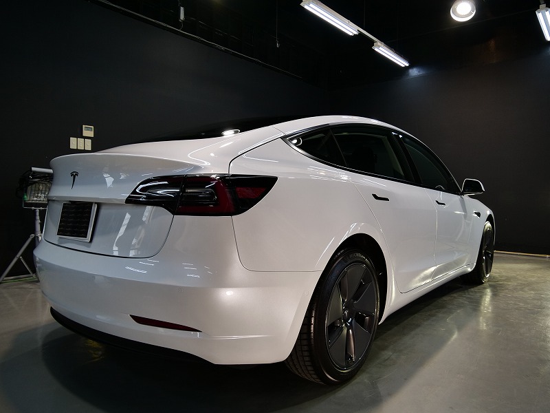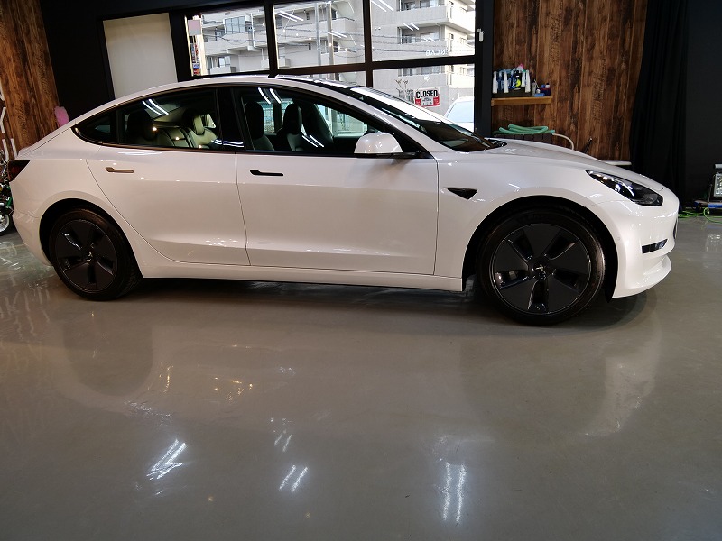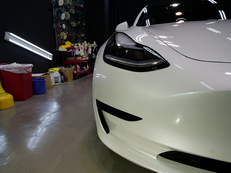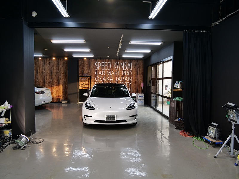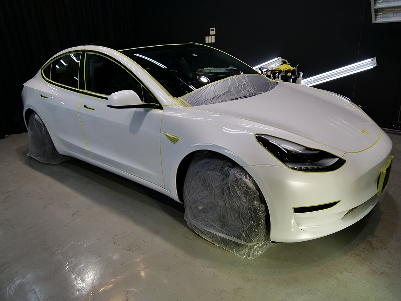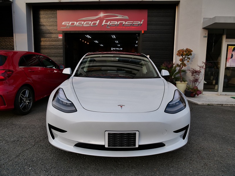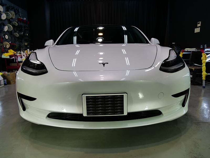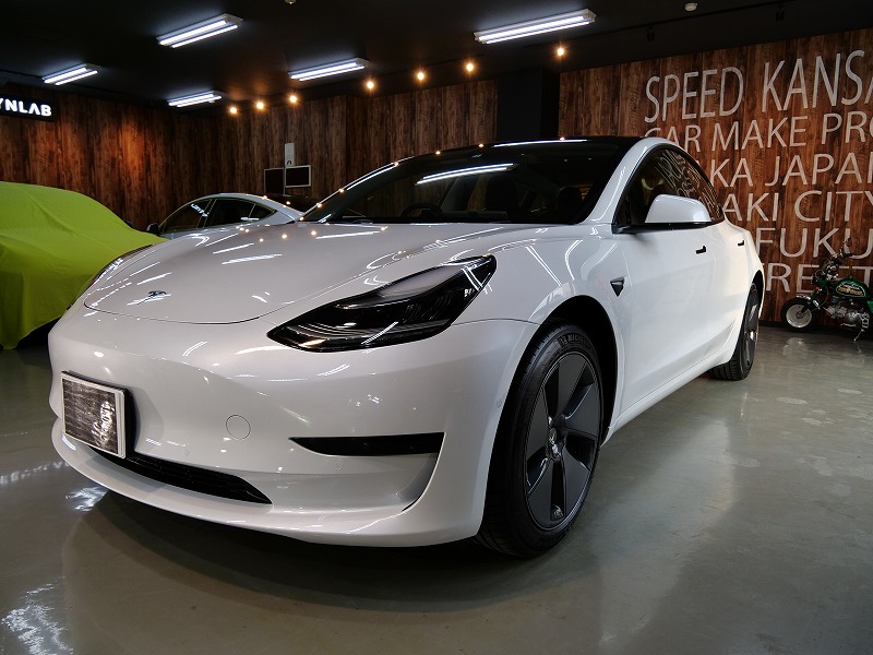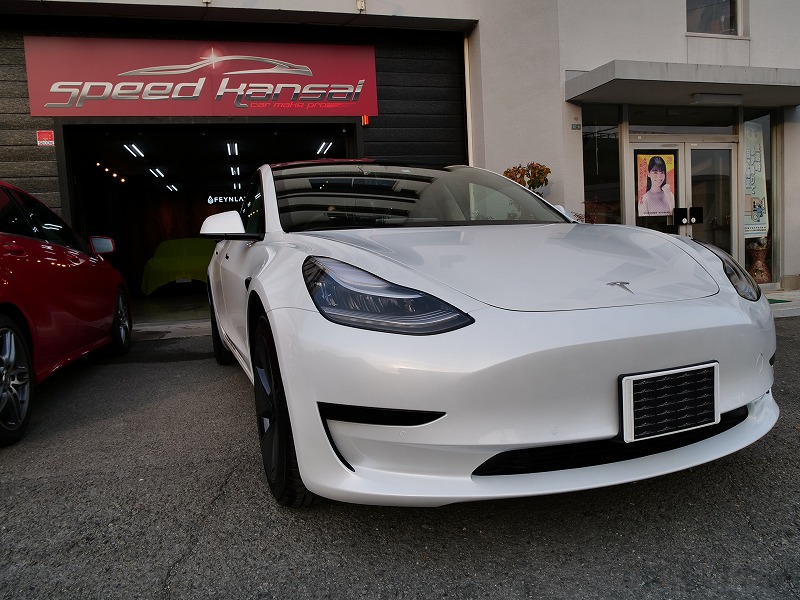 大阪市よりテスラ モデル3 のご入庫です!ボディカラーはパールホワイトマルチコート!施工はボディ