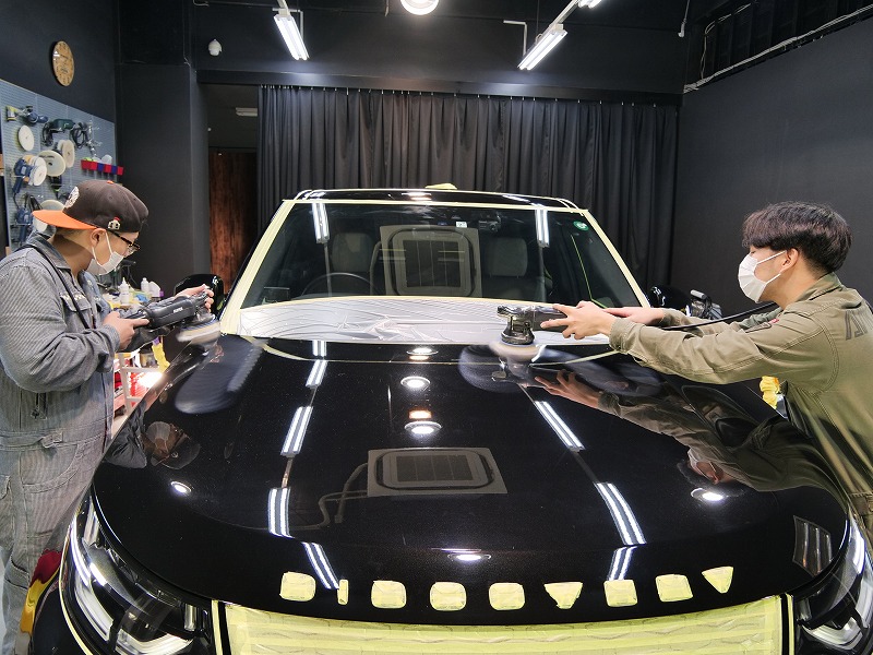 施工はボディにはハイモースコートザ・ネオ(超撥水)/その他ホイールコーティングやフロントガラス