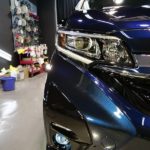 ブルービームメタリック!施工はボディには完全無機質のクォーツ(親水性)/ホイールコーティング