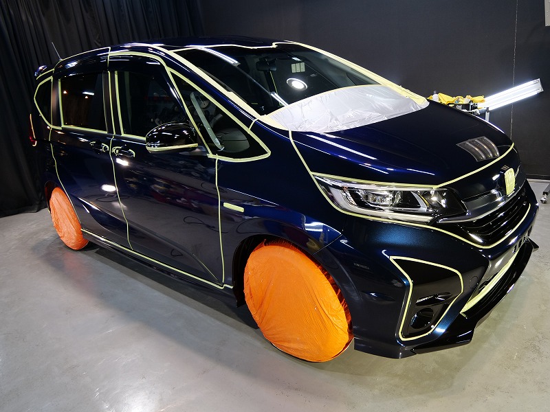 ブルービームメタリック!施工はボディには完全無機質のクォーツ(親水性)/ホイールコーティング