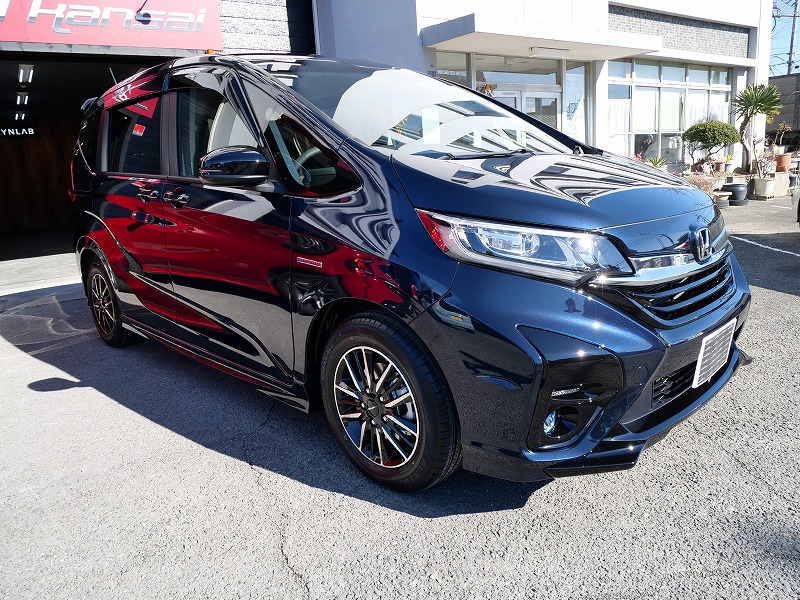 大阪府吹田市よりホンダ フリード ハイブリッド モデューロXの五点です!ボディカラーはミッドナイト