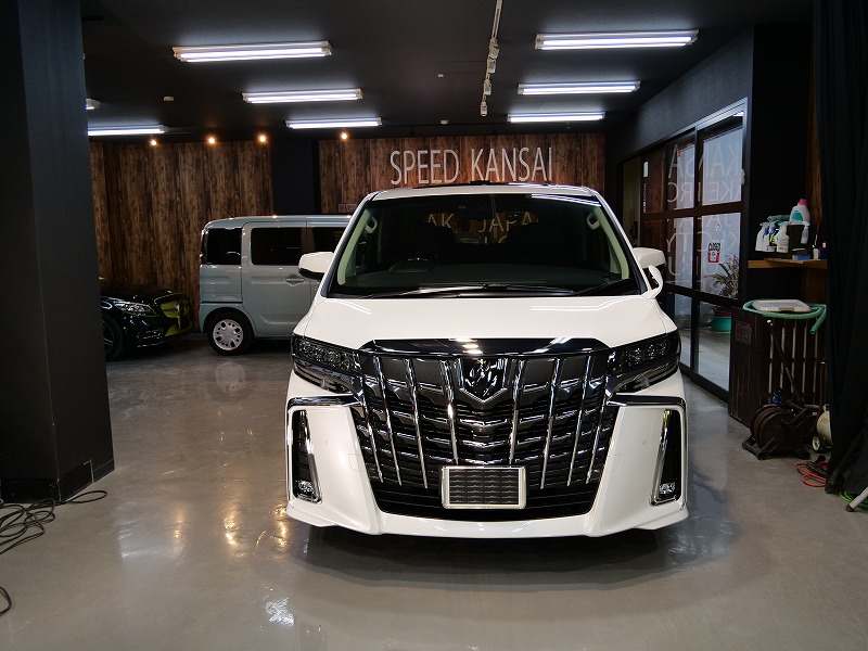 大阪府吹田市より当店のリピーター様がトヨタアルファードをお持ち下さいました!ボディカラーはホワイト