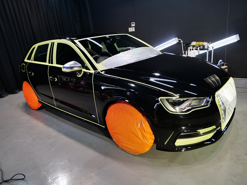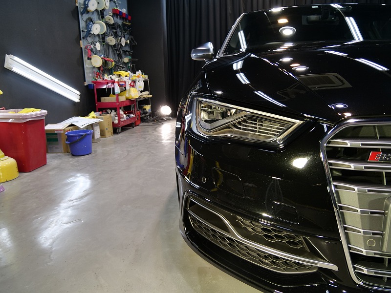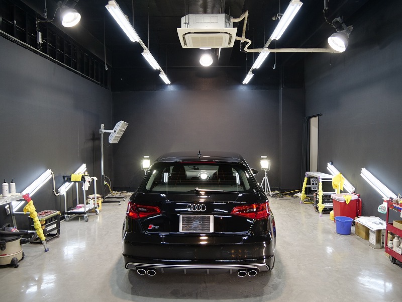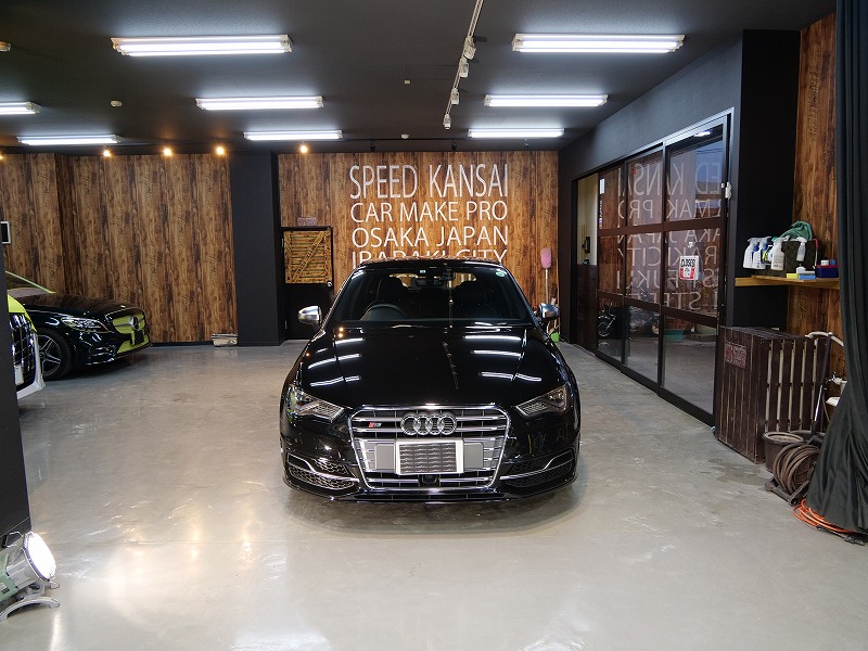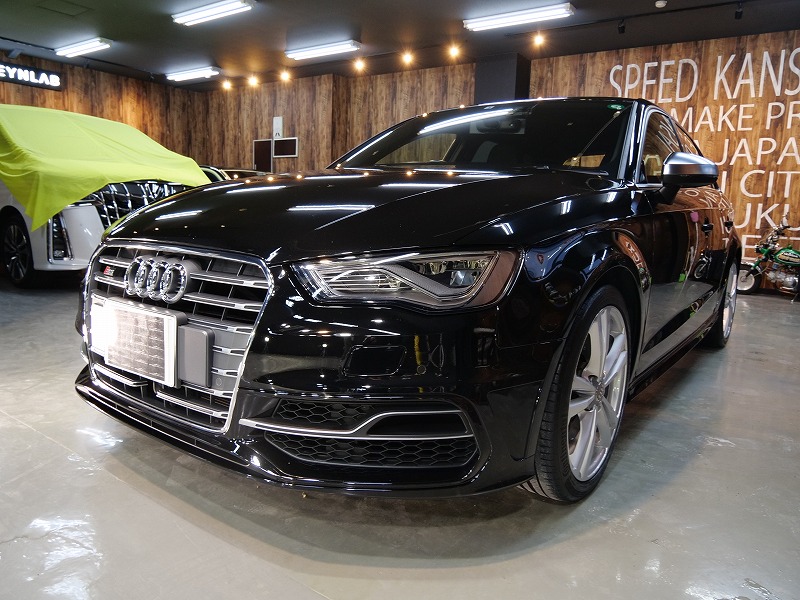 京都府よりアウディS3 のご入庫です!ボディカラーはミストブラックメタリック!施工はボディには