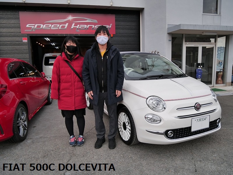 大阪府東大阪市より当店のお客様からのご紹介でフィアット500C ドルチェビータのご入庫です!ボディカラー