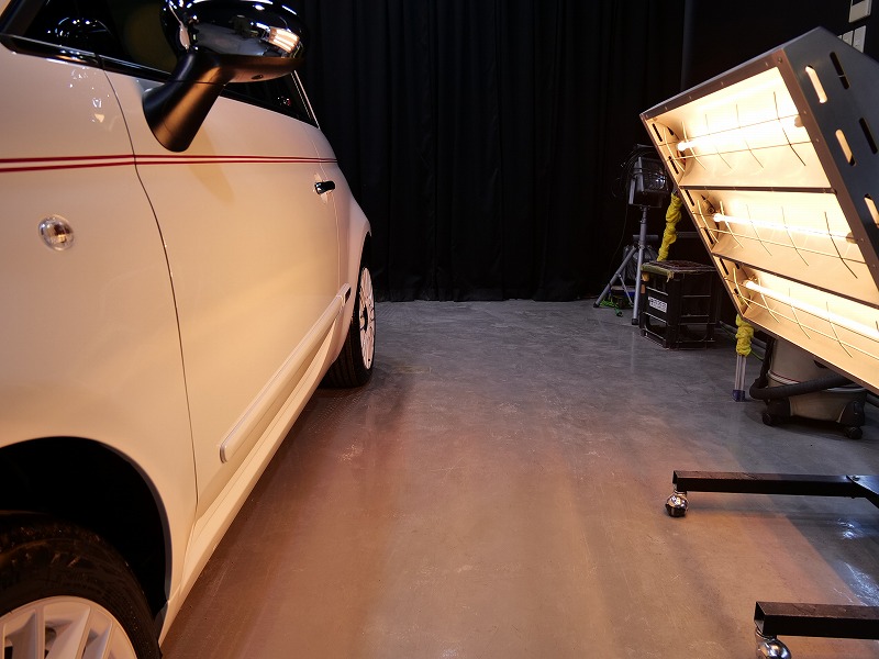 はボサノバホワイト(ソリッド)!施工はボディには完全無機質のクォーツ(親水性)/ホイールコーティング/