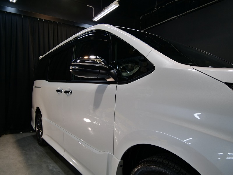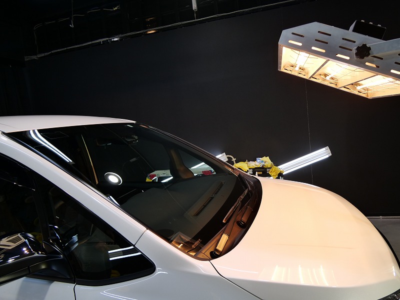 ホワイトパールクリスタルシャイン!施工はボディにはハイモースコートザ・ネオ(超撥水)/ホイール