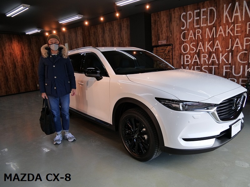 大阪府吹田市よりマツダCX-8のご入庫です!ボディカラーはスノーフレイクホワイトパールマイカ!施工は