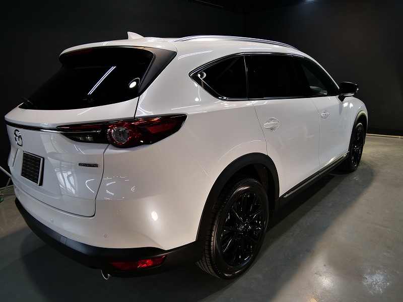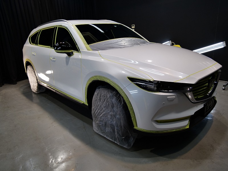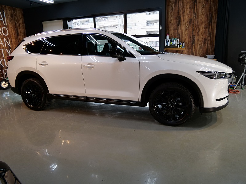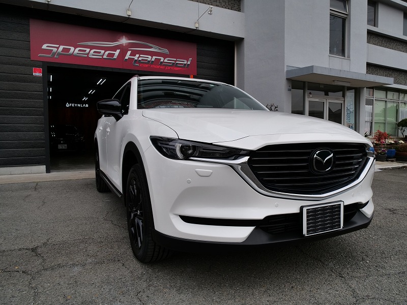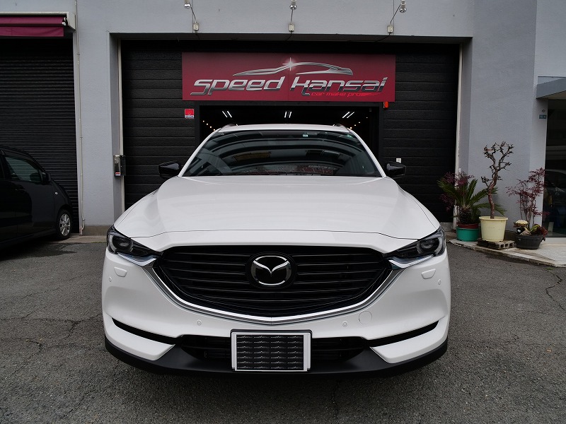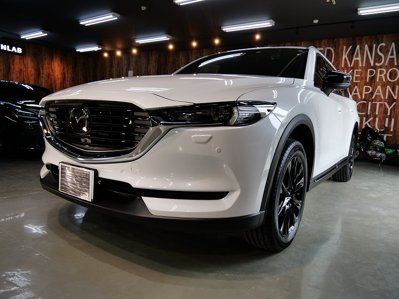 大阪府吹田市よりマツダCX-8のご入庫です!ボディカラーはスノーフレイクホワイトパールマイカ!施工は