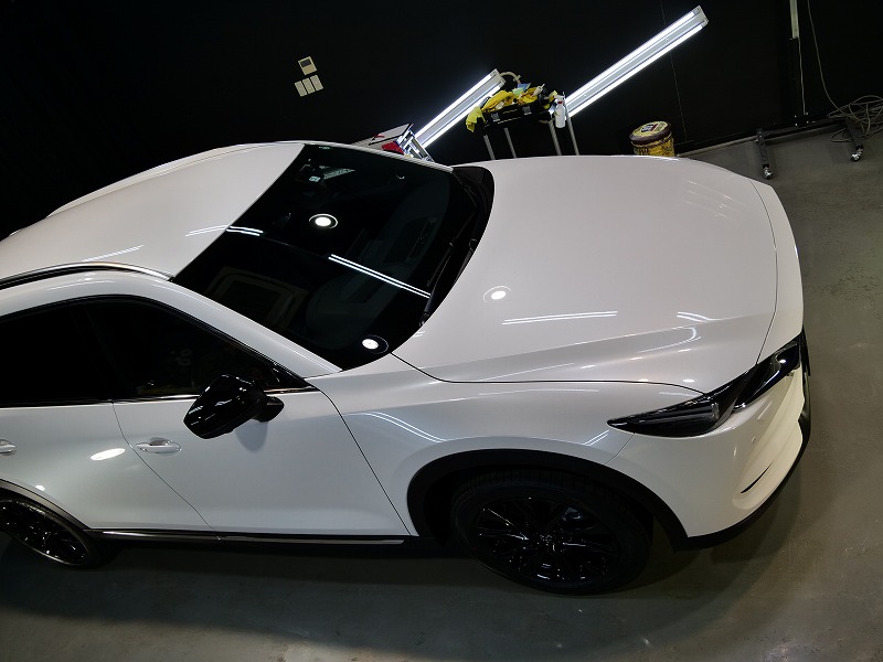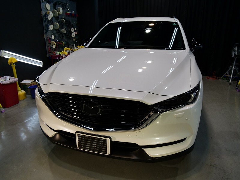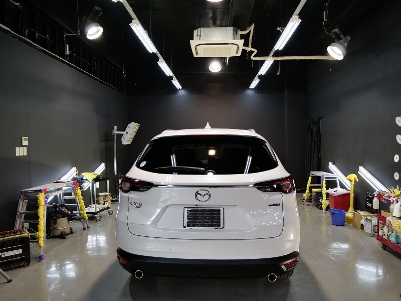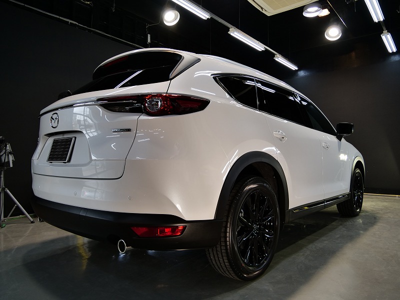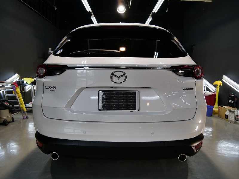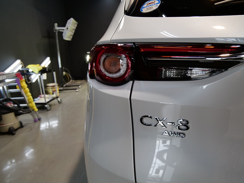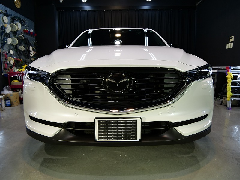 大阪府吹田市よりマツダCX-8のご入庫です!ボディカラーはスノーフレイクホワイトパールマイカ!施工は
