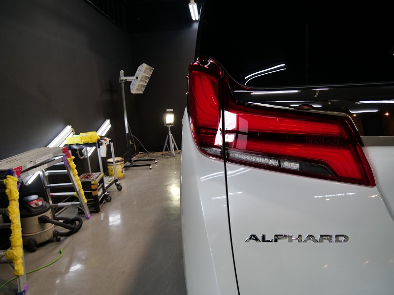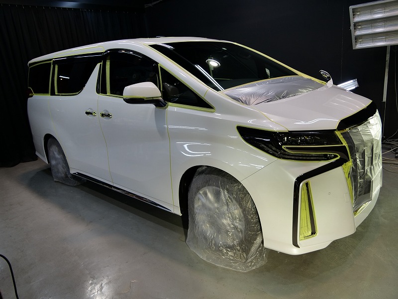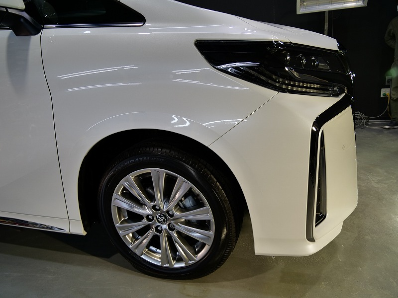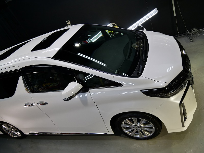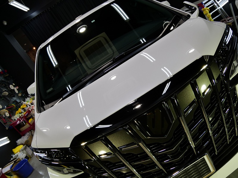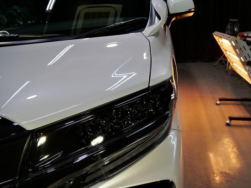 カラーはホワイトパールクリスタルシャイン!施工はボディにはソフト99製の最高峰ハイモースコートザ・