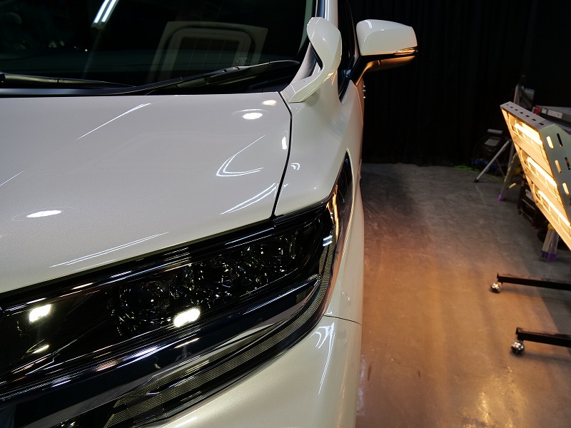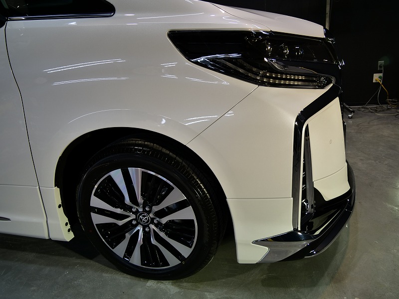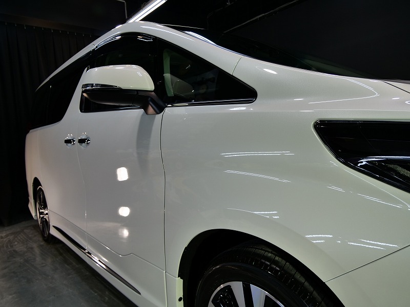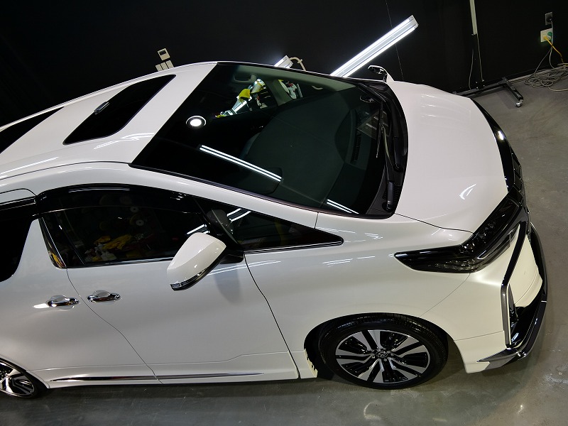 ホワイトパールクリスタルシャイン!施工はボディにはハイモースコートザ・ネオ(超撥水)/ホイール