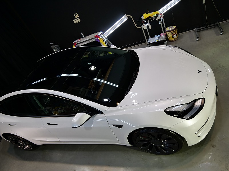 難しいと言われているテスラのルーフも綺麗に貼らせて頂きます!