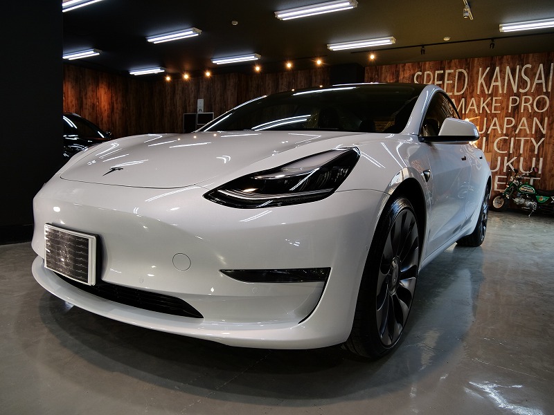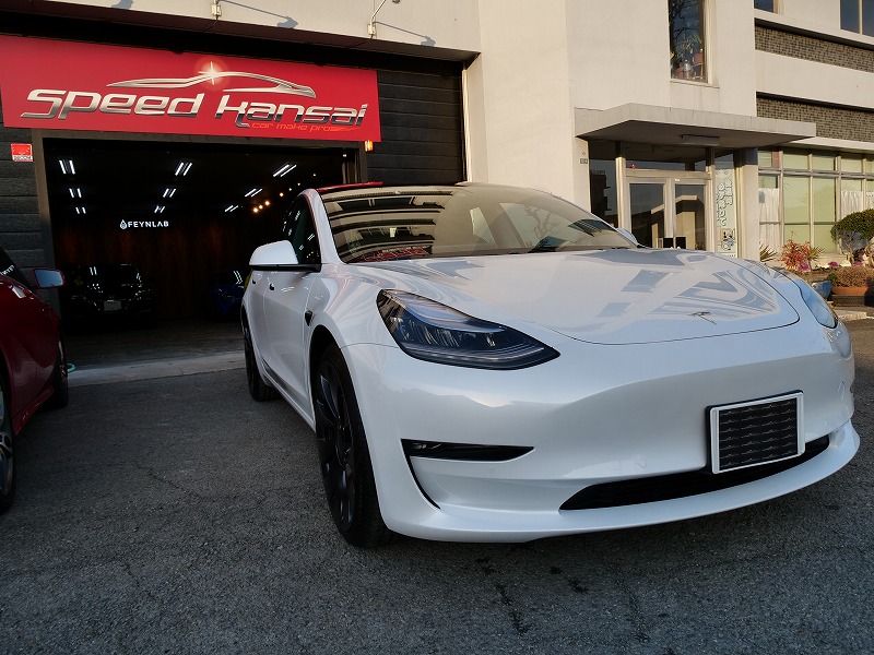 兵庫県宝塚市よりテスラ モデル3 デュアルモーターのご入庫です!ボディカラーはパールホワイトマルチ