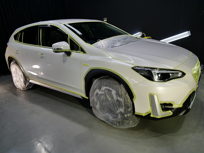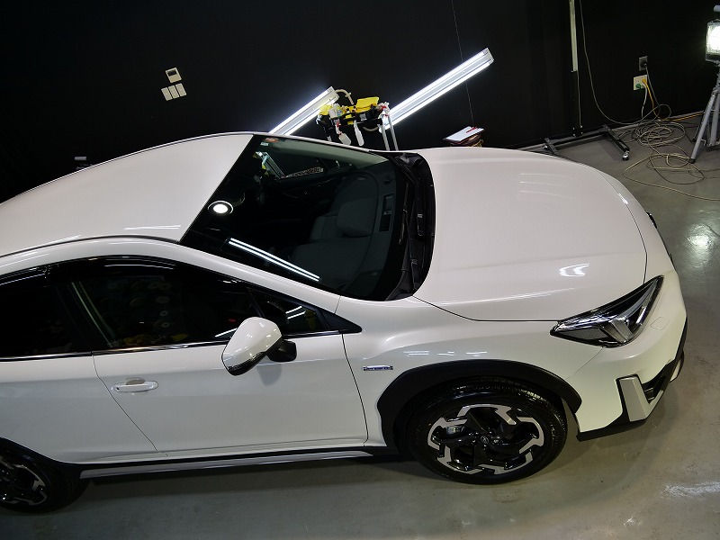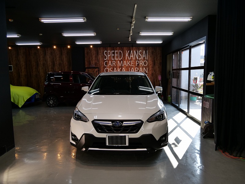 大阪市北区よりスバルXV のご入庫です!ボディカラーはクリスタルホワイトパール!施工はボディには