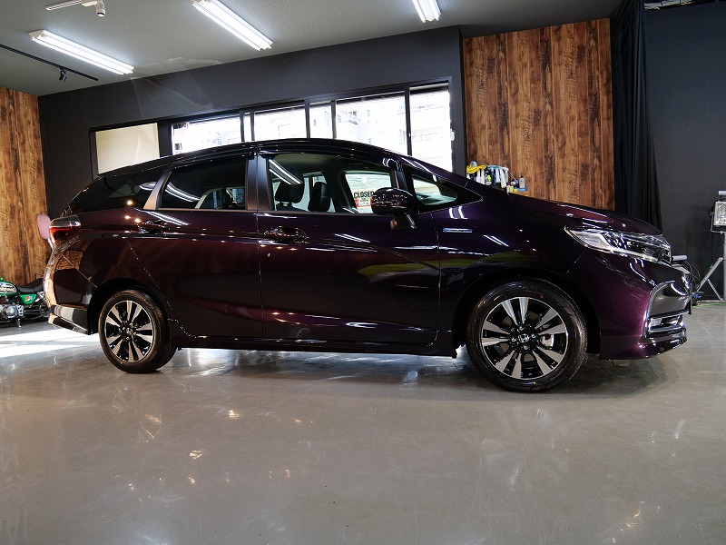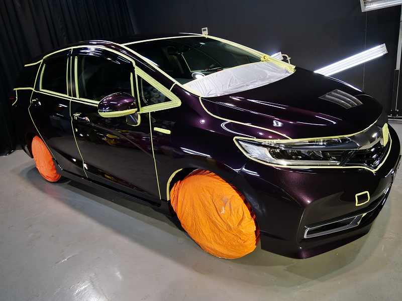 パープル パール!施工はボディには完全無機質のクォーツ(親水性)/ホイールコーティング/未塗装樹脂