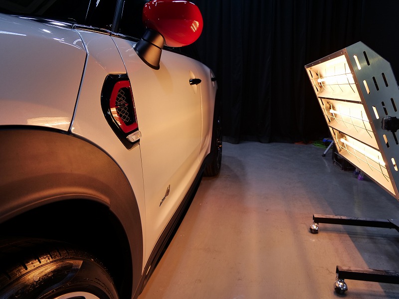 シルバー&ルーフレッド!施工はボディには完全無機質のクォーツ(親水性)/ホイールコーティング
