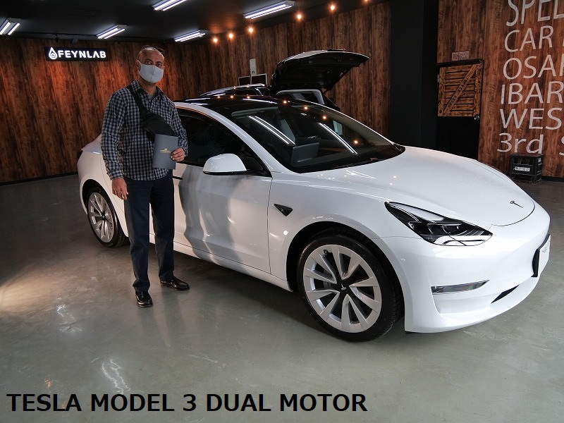 京都市伏見区より人気のテスラ モデル3 デュアルモーターのご入庫です!ボディカラーはパールホワイト