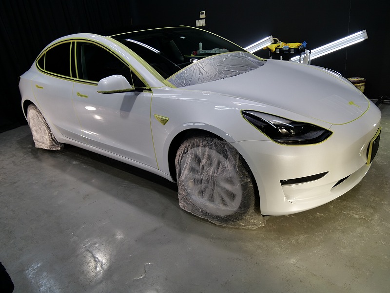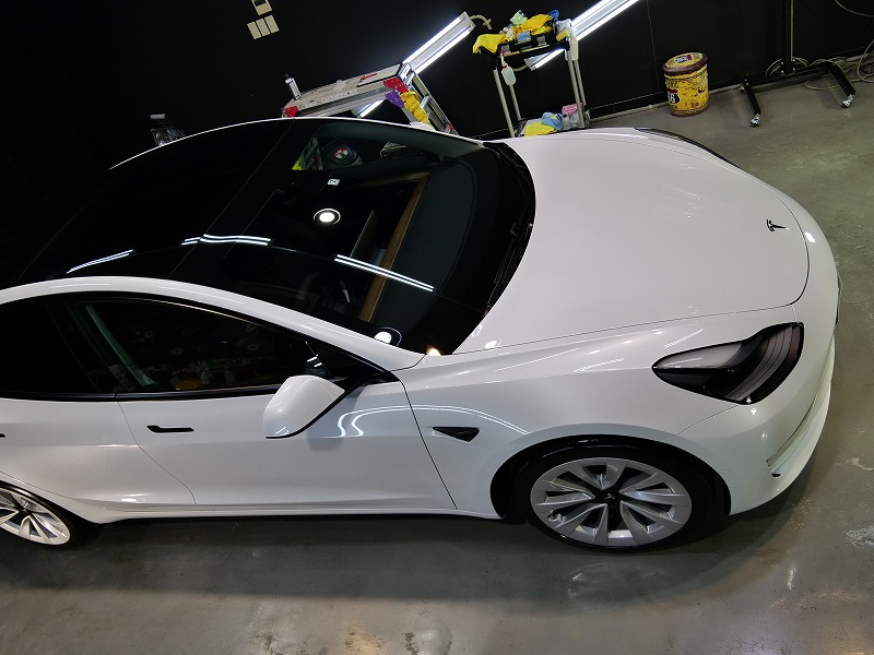 ウィンドウガラス全面撥水二年耐久プライムビューの四点です!テスラはガラス面が多くルーフに関しては
