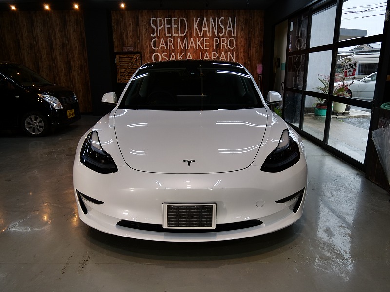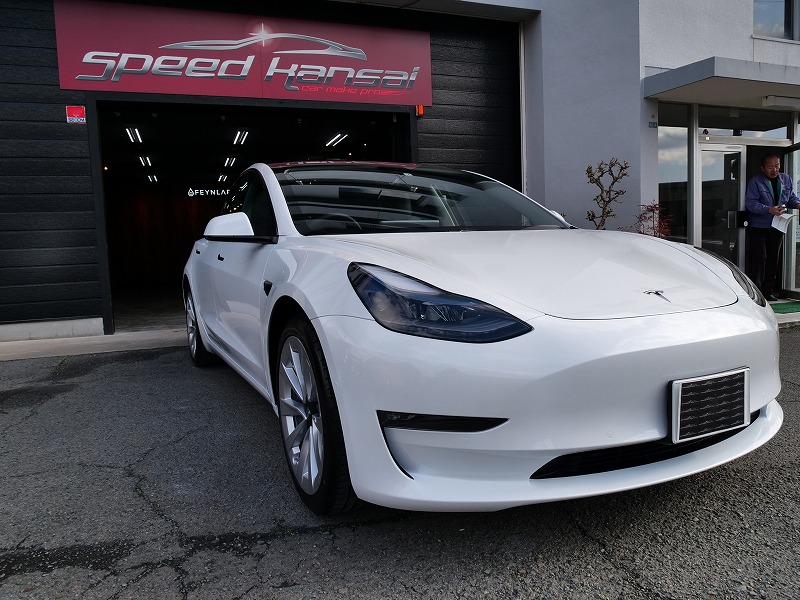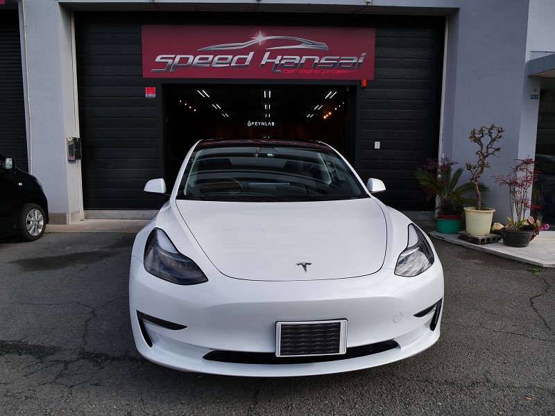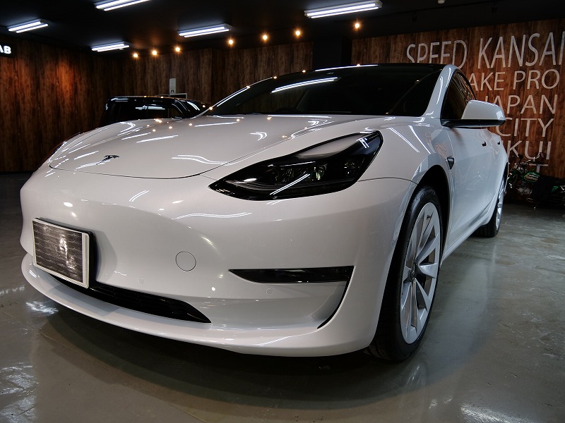 京都市伏見区より人気のテスラ モデル3 デュアルモーターのご入庫です!ボディカラーはパールホワイト