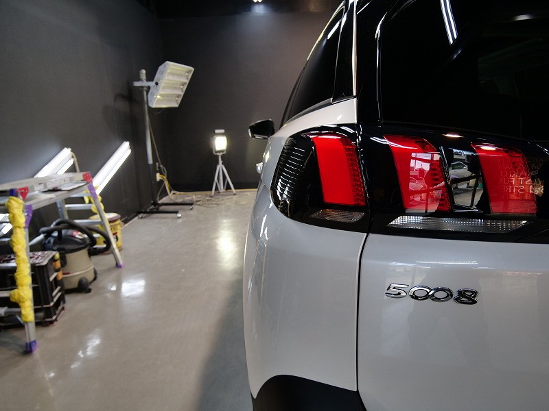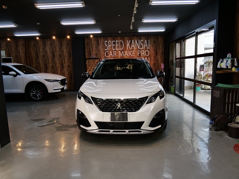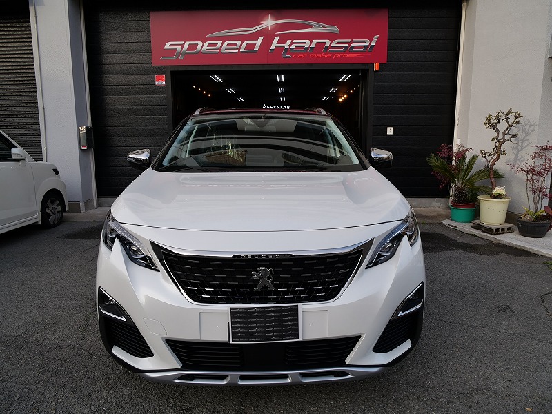 大阪府吹田市よりプジョー5008 特別仕様車のご入庫です!ボディカラーはホワイトパール!施工はボディには