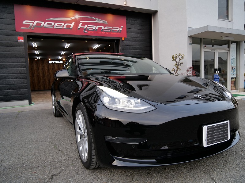 奈良県より人気のテスラ モデル3 デュアルモーターのご入庫です!ボディカラーはソリッドブラック!施工は