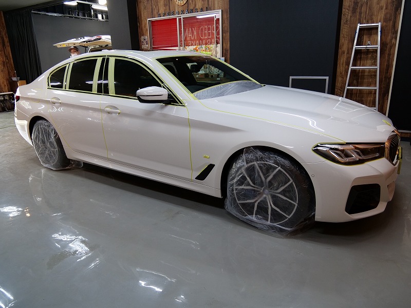奈良県よりBMW 530i Mスポーツのご入庫です!ボディカラーはアルピンホワイト(ソリッド)施工はボディ