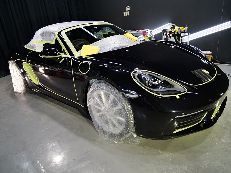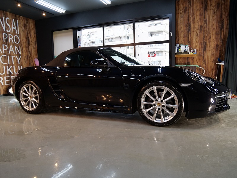 大阪市平野区よりポルシェボクスターのご入庫です!ボディカラーはジェットブラックメタリック!施工は